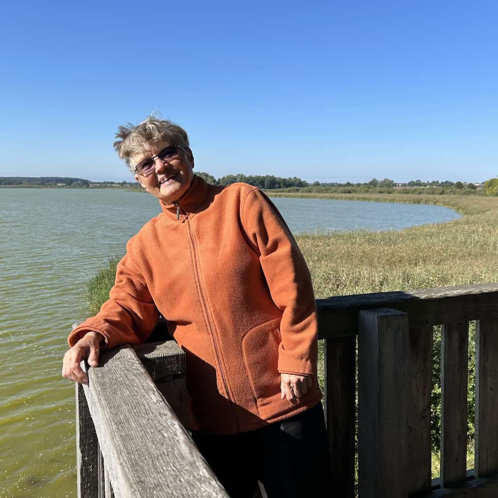 Bei unserem Abschied erhalten wir noch Kuchen mit auf den Weg, sowie Obst und Eingemachtes und auch noch Suppe, sodass wir die nächsten Tage sicher nicht hungern werden. Dann geleitet Renate uns sogar noch per Fahrrad zum Stellplatz.