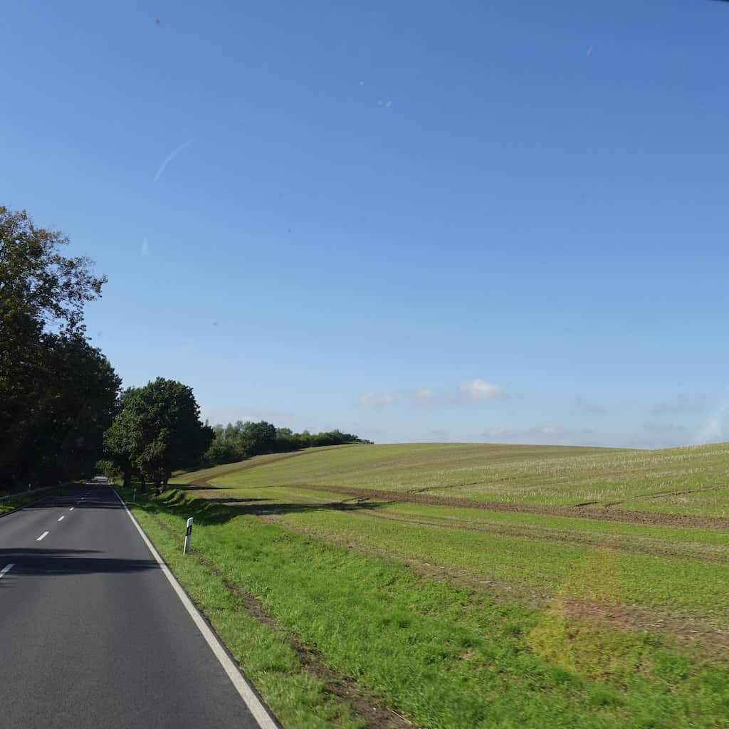 Unser erstes Zwischenziel führt durch weites Ackerland nach Möllenhagen. Dort sollte gemäss unserem Navi ein Edeka-Laden auf unserer Route liegen. Den gibt es aber nicht (mehr?). Stattdessen ein Netto, wo wir aber weder anständiges Brot, noch schöne Blumen bekommen. Dafür bekommen wir wieder eine tolle Holperstrasse zu spüren.