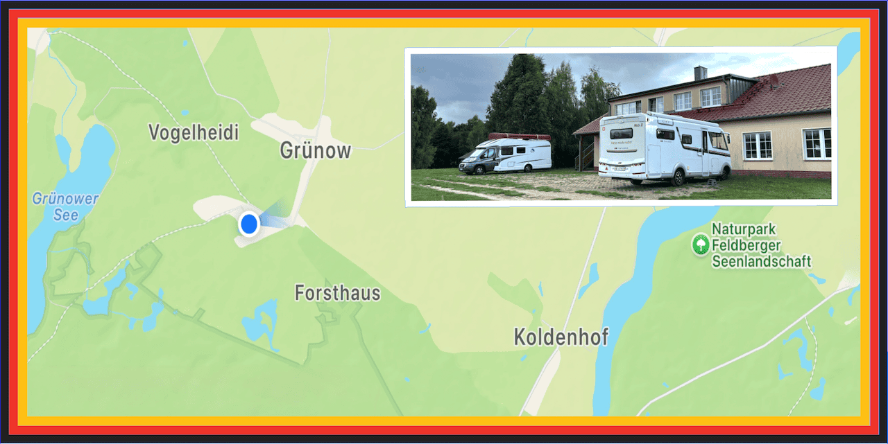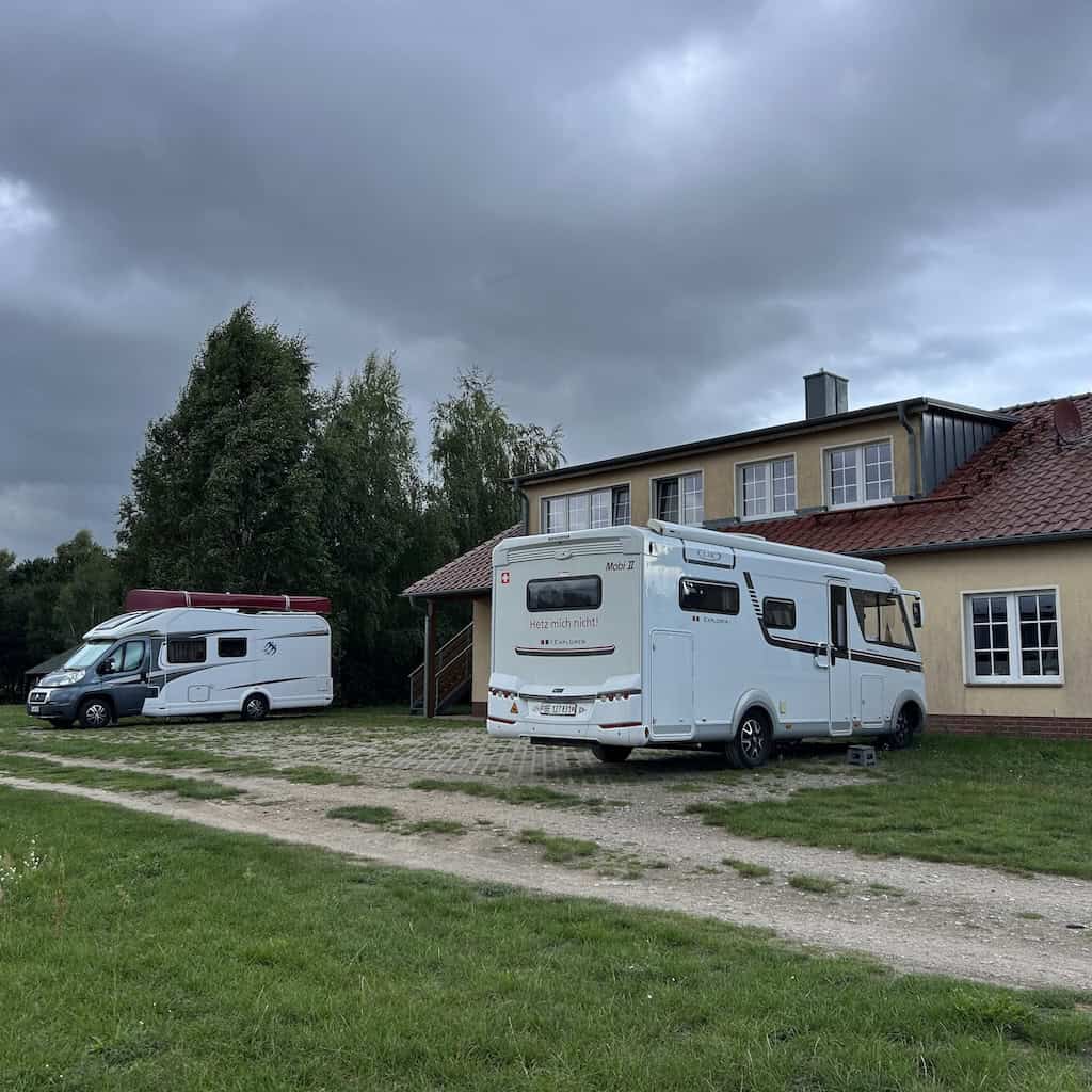 Aber wir wollen den Stellplatz ausprobieren, den es neuerdings in Grünow gibt. Renate und Jürgen kennen die Betreiber gut und kündigen uns telefonisch an. Allerdings sind diese gerade selbst mit ihrem Camper in Kroatien unterwegs.