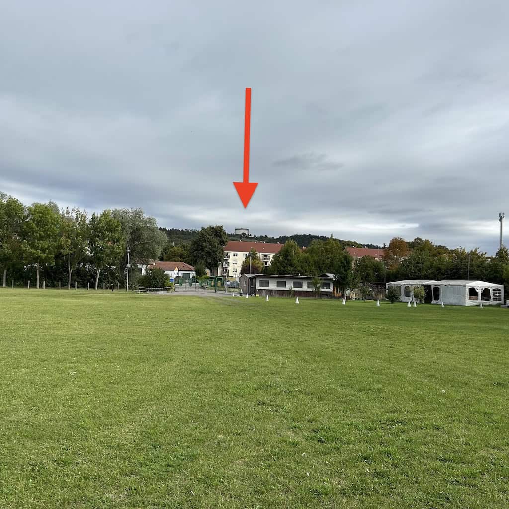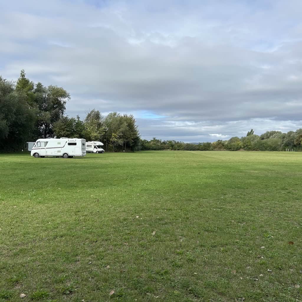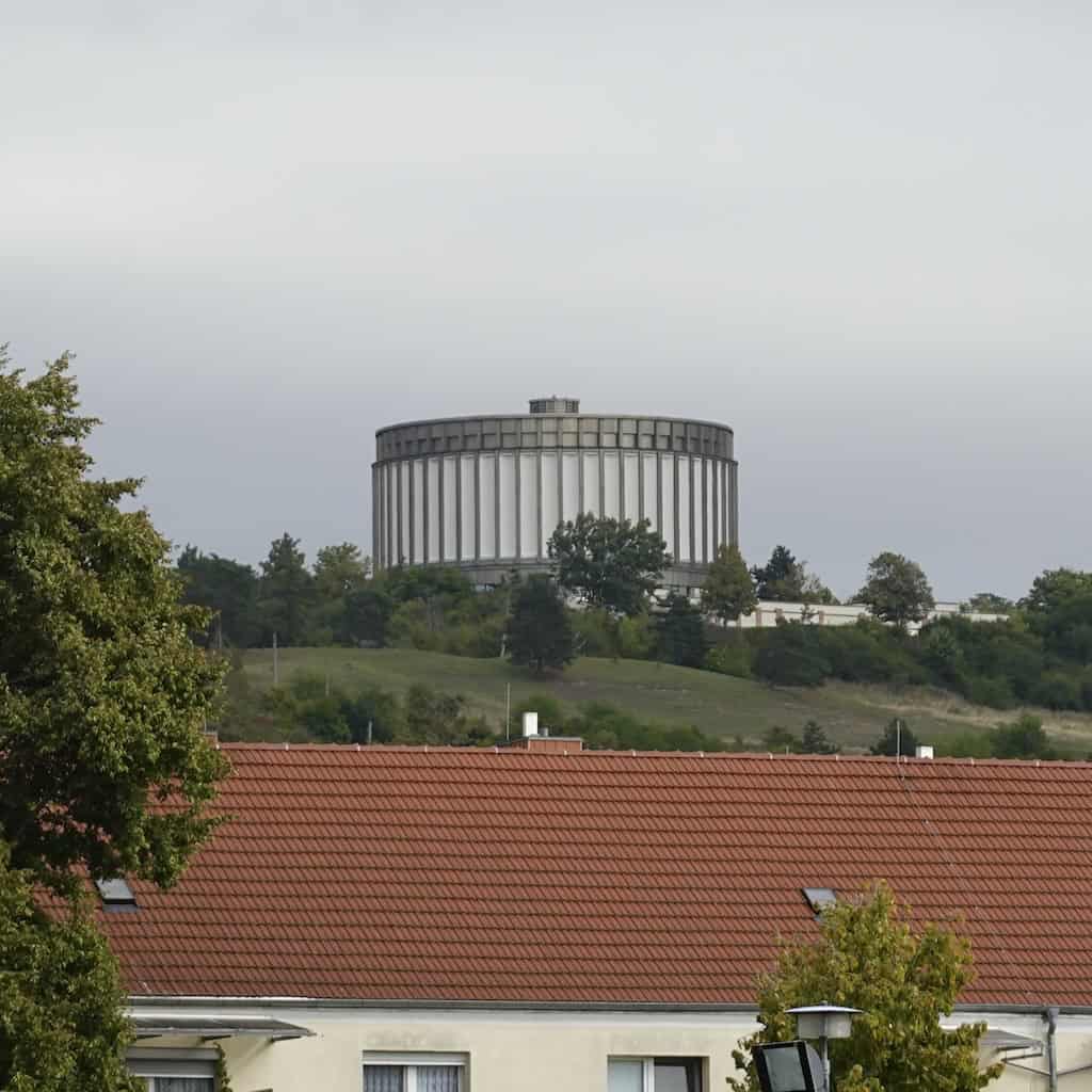 Auf dem Stellplatz in Bad Frankenhausen hätten wohl auch 500 Camper Platz. Wir sehen von dort am Berg einen imposanten Rundbau.