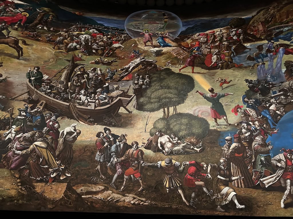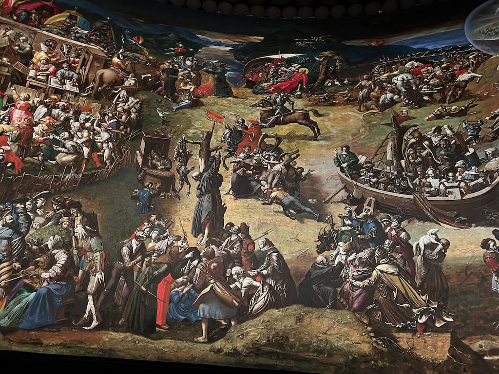 Wir Besucher werden mit einem Audio-Guide sehr ausführlich durch die Motive und Hintergründe des Gemäldes geführt. Es ist wirklich ein gewaltiges und uns erschlagendes Erlebnis.