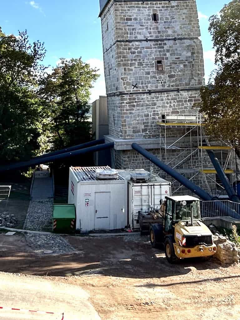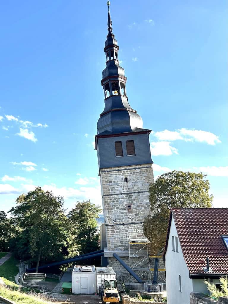 In Bad Frankenhausen steht auch noch ein Schiefer Kirchturm. Der Grund ist der salz- und gipshaltige Untergrund, der sich durch Wasser tief unter der Stadt auflöst. Mehrere Stützen sollen wohl Einhalt gebieten.