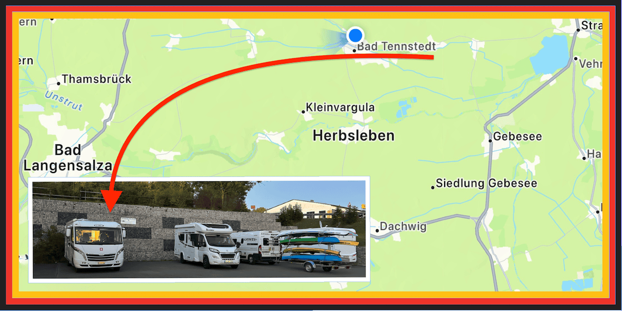 Wir wollen noch ein wenig weiterfahren und füttern unser Navi mit den Koordinaten von Bad Tennstedt, einer kleinen Kurstadt mit 2500 Einwohnern und einem Stellplatz.