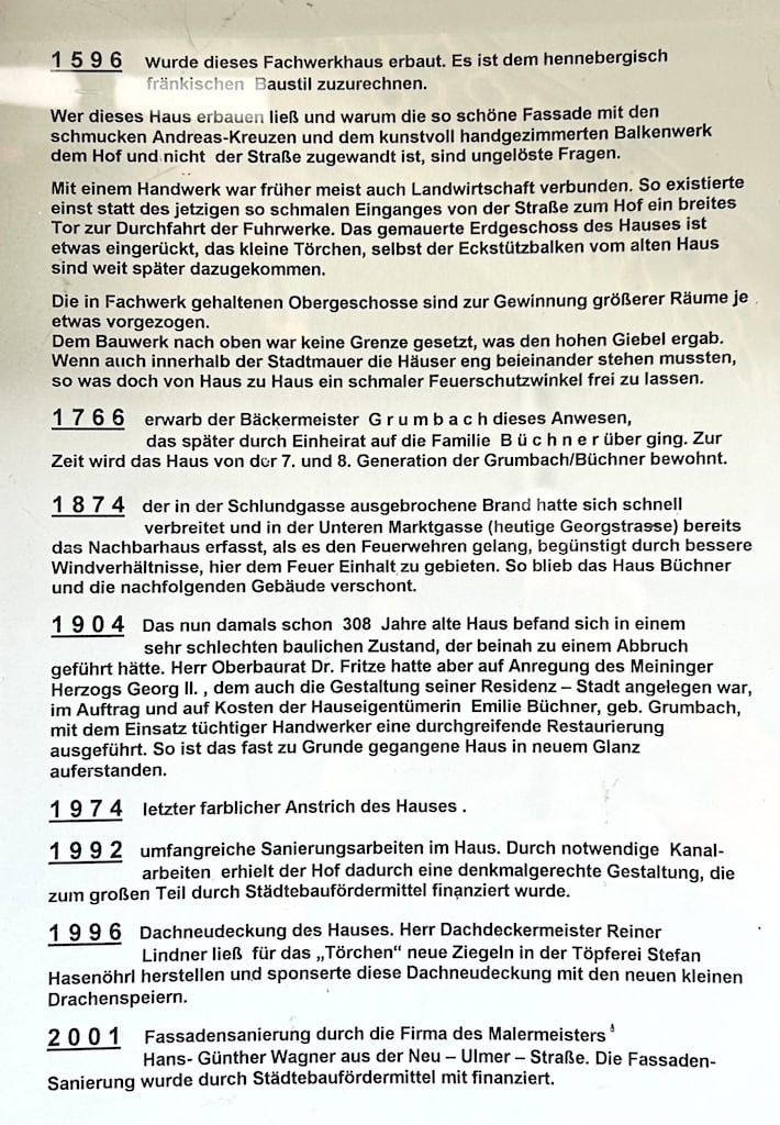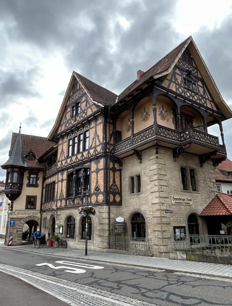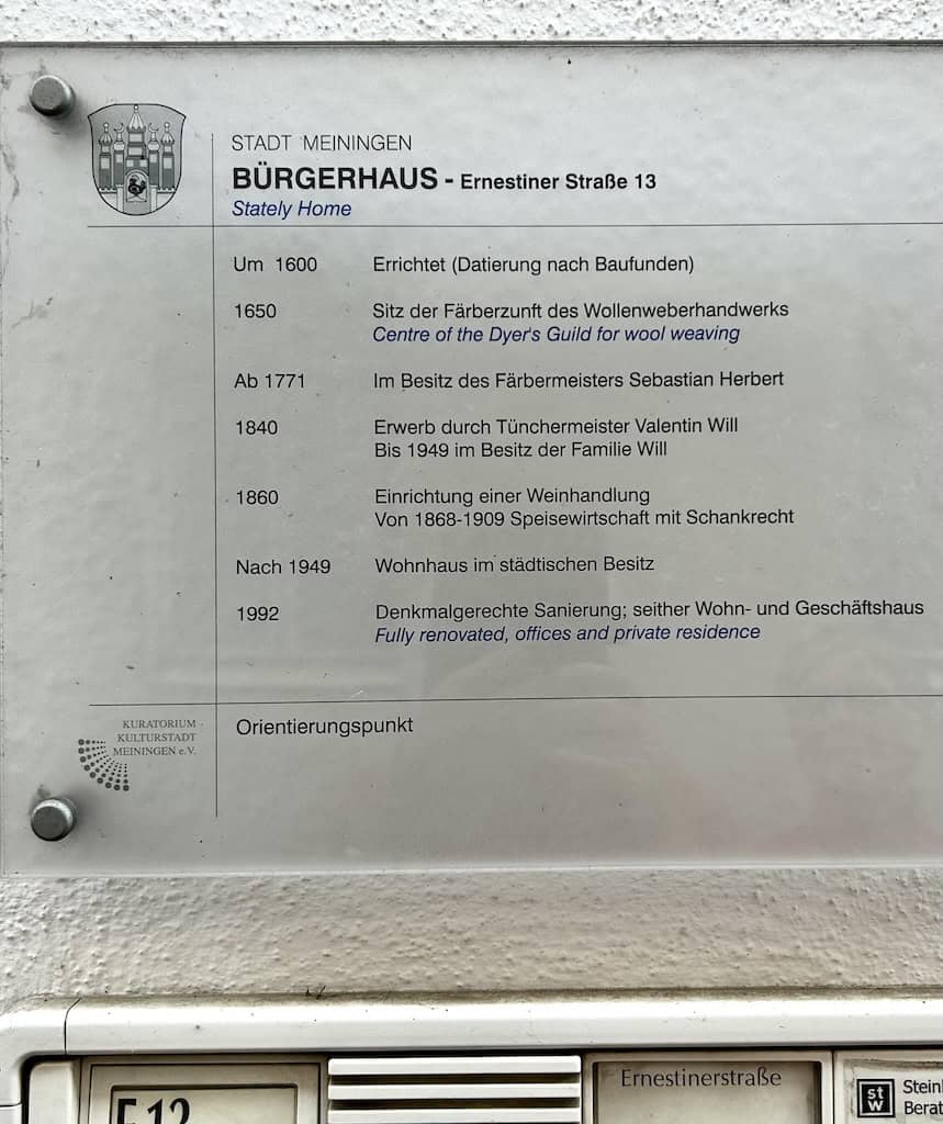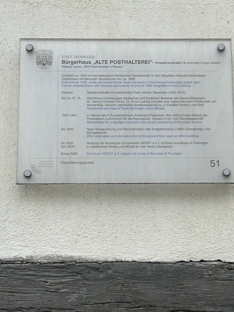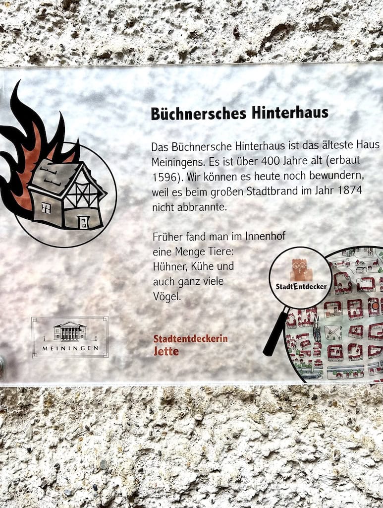 Meiningen ist eine Kreisstadt in Thüringen mit rund 25’000 Einwohnern und liegt an der Werra. Die historische Altstadt hat uns sehr gefallen. Die Stadtkirche mit ihren 50 Meter hohen Türmen, das Büchnersche Haus, das älteste der Stadt und diverse Kulturtempel wie die städtische Kunstgalerie Ada und das Staatstheater. Dazwischen viele sauber restaurierte Gebäude, urige Schänken und auch edle Restaurants, wie das Henneberger Haus von 1895.