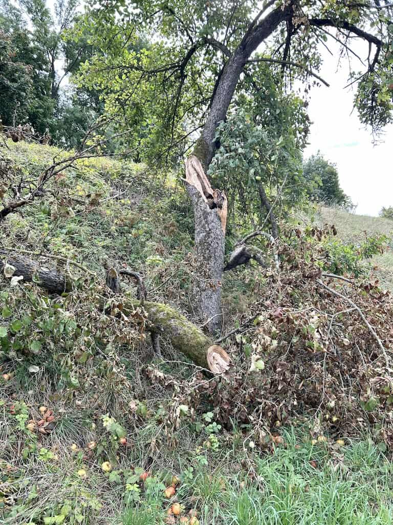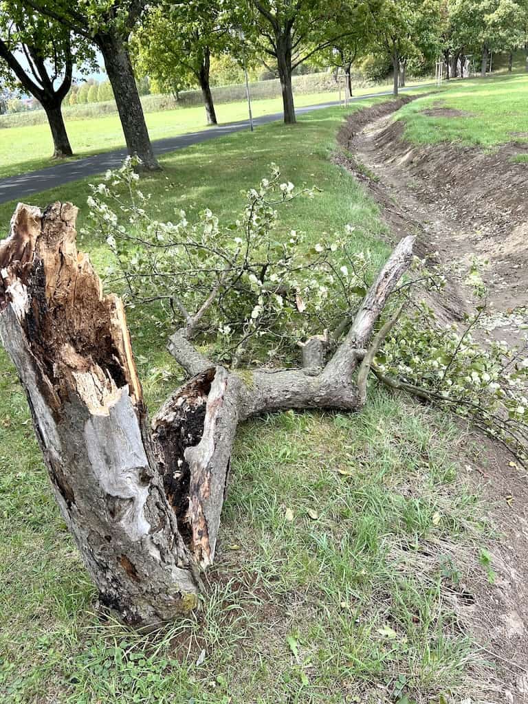 Den Sturm der letzten Tage haben einige Obstbäume nicht überlebt. Sie waren aber auch schon altersschwach.