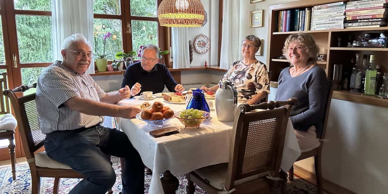 Wir fahren zu Michaels Jugendfreund Hans und seiner Frau Uli nach Schweinfurt. Erst bei Kaffee und Kuchen, dann bei einem reichhaltigen Bayerischen Abendbrot verbringen wir fröhliche Stunden.