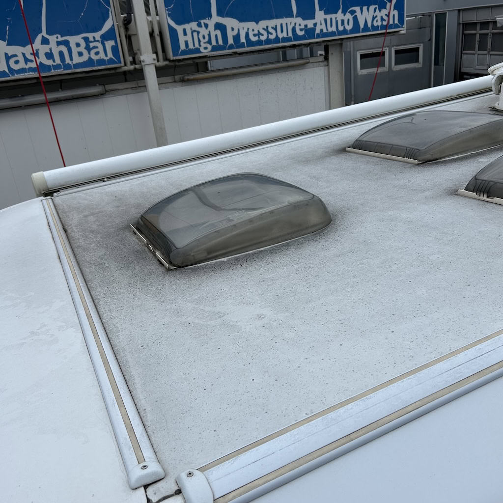 Erstes Ziel ist eine Waschanlage in Schweinfurt, die wir vom letzten Jahr kennen. Dort gibt es nämlich ein Podest, was man leider nur selten antrifft.  So kann man auch das Dach gut reinigen.
