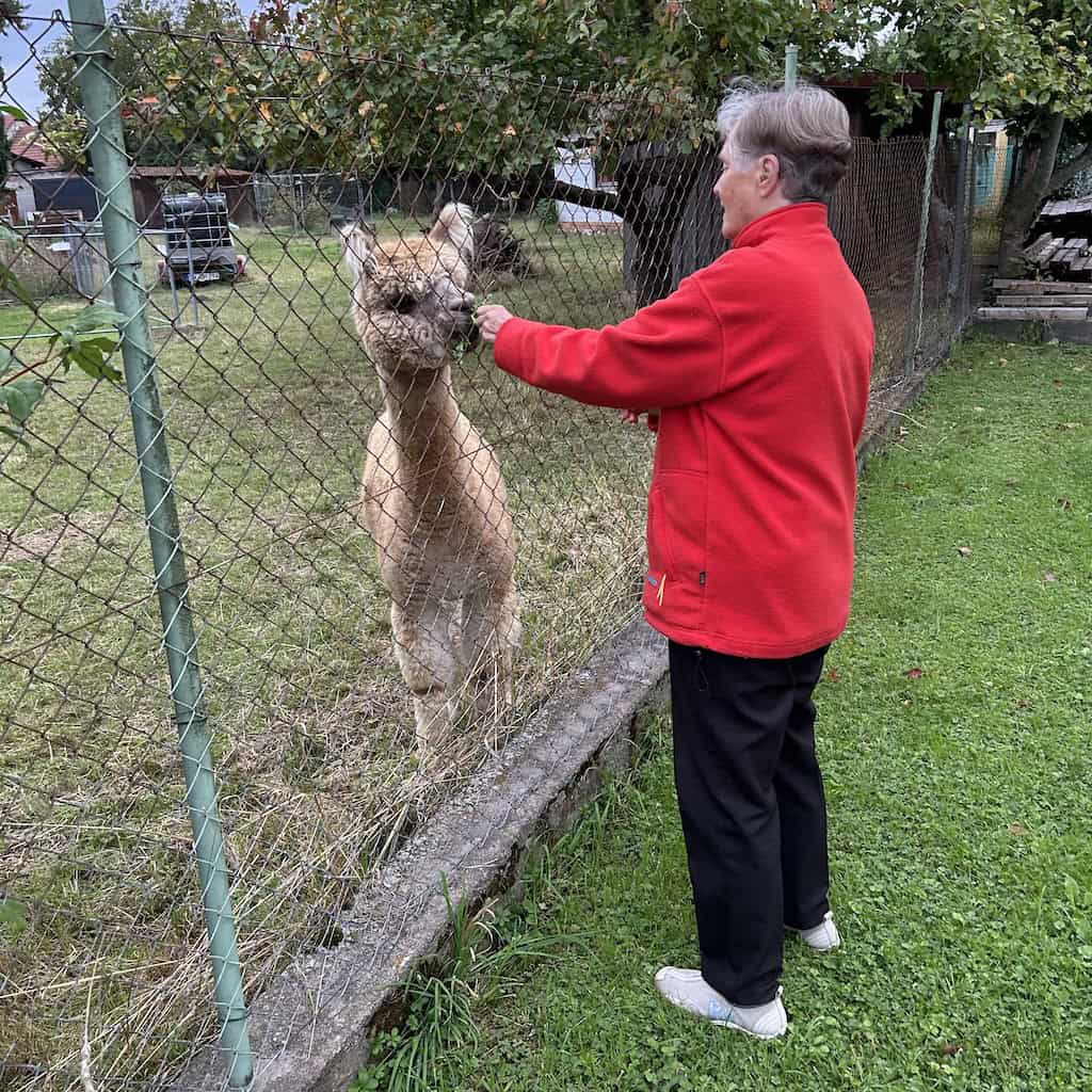 Bei einem Rundgang entdecken wir nicht nur ein reizendes Alpaka, sondern sehen auch, dass das Restaurant „Schugi’s Küche“ am Sportplatz heute geöffnet ist. Das lassen wir uns nicht entgehen.