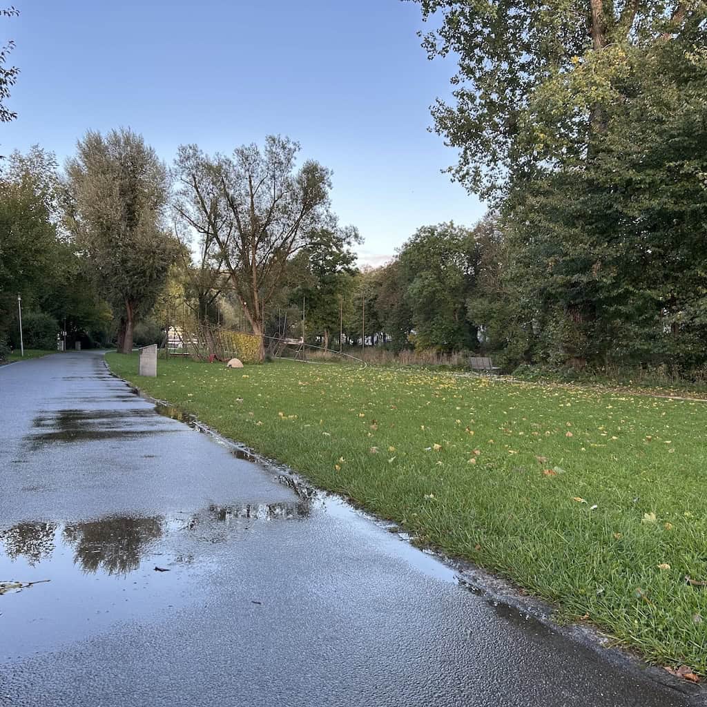 Zwischendurch regnet es tüchtig. Der Abendspaziergang fällt deshalb sehr kurz aus.