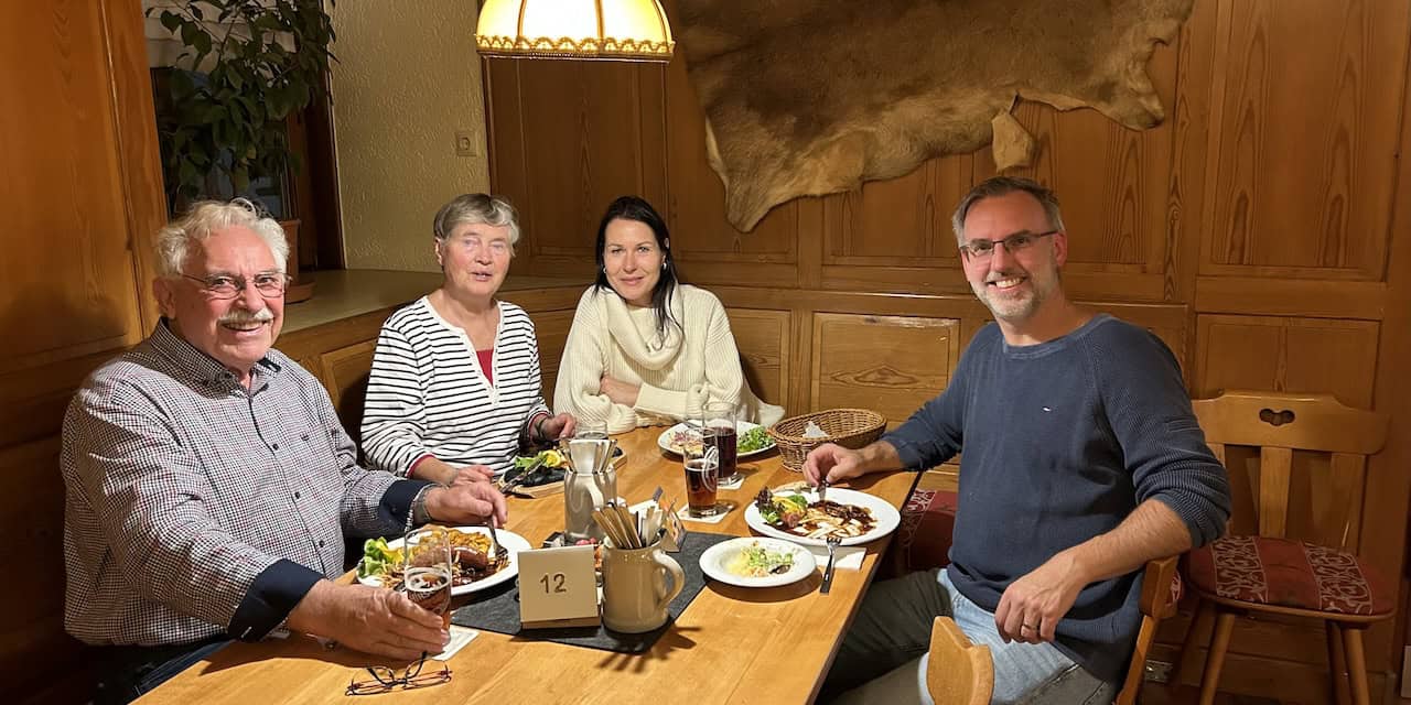 Zum Mittagessen sind wir bei Renates Bruder Hans-Burkhard und seiner Frau Beate eingeladen. Wir essen wieder einmal sehr lecker. Wir haben intensive und gute Gespräche und auch viel Spass.