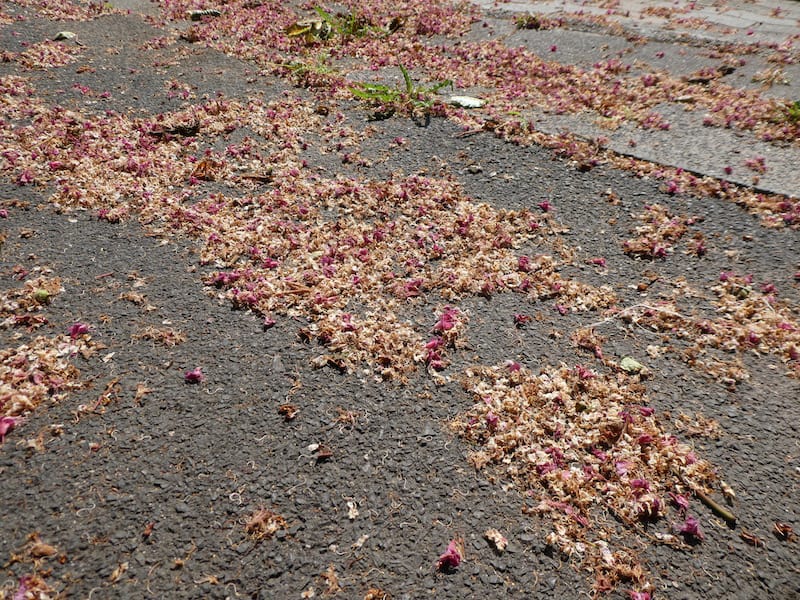 Es ist schon morgens wieder richtig warm. Wir wollen weiter, müssen unser Fahrzeug aber noch von den Kastanienblüten befreien.