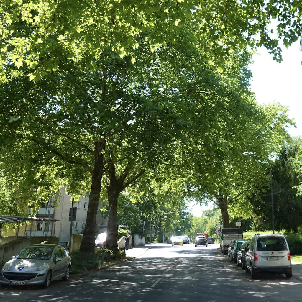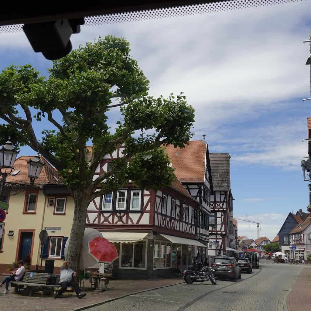 Unsere Route führt mainabwärts. Vor Seligenstadt entdecken wir einen schönen schattigen Parkplatz für unsere Mittagsrast. Unser Zwischenziel ist Offenbach. Wir sind erstaunt wie viel Wald es auch noch im städtischen Ballungsgebiet gibt.