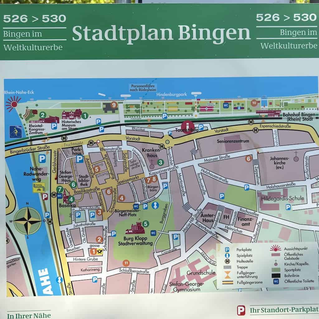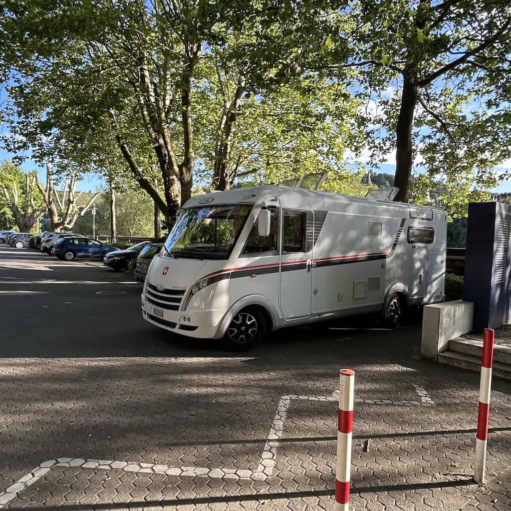 In Bingen am Rhein parken wir auf dem «Künstler-Parkplatz». Tatsächlich braucht Michael all seine Künste, um rückwärts eine Parklücke zuhinterst auf dem Parkplatz zu treffen.