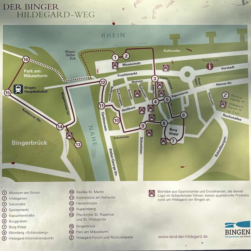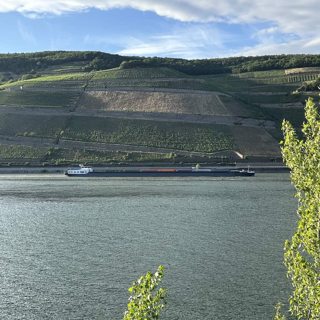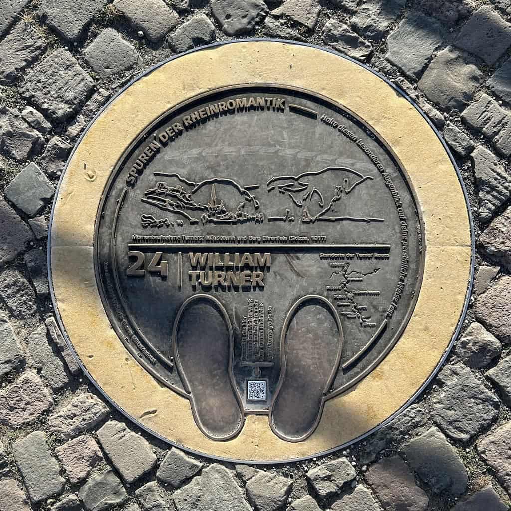 Wir laufen zum Rhein-Nahe-Eck. Hier gedenkt man dem Maler William Turner, der um 1817 in Bingen einige seiner Kunstwerke gemalt hat. In dieser Gegend findet man Weinberge soweit das Auge reicht.