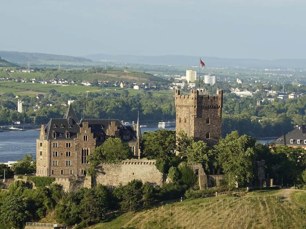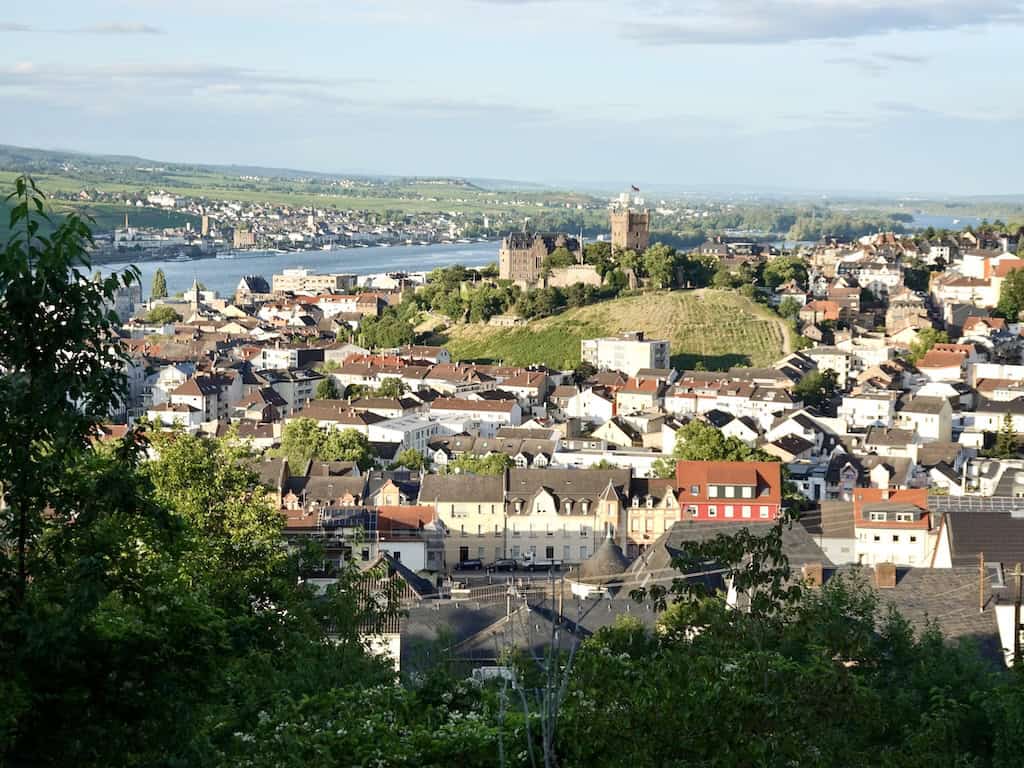 Im Bildzentrum die Burg Klopp von 1277, Teil des UNESCO-Welterbes.