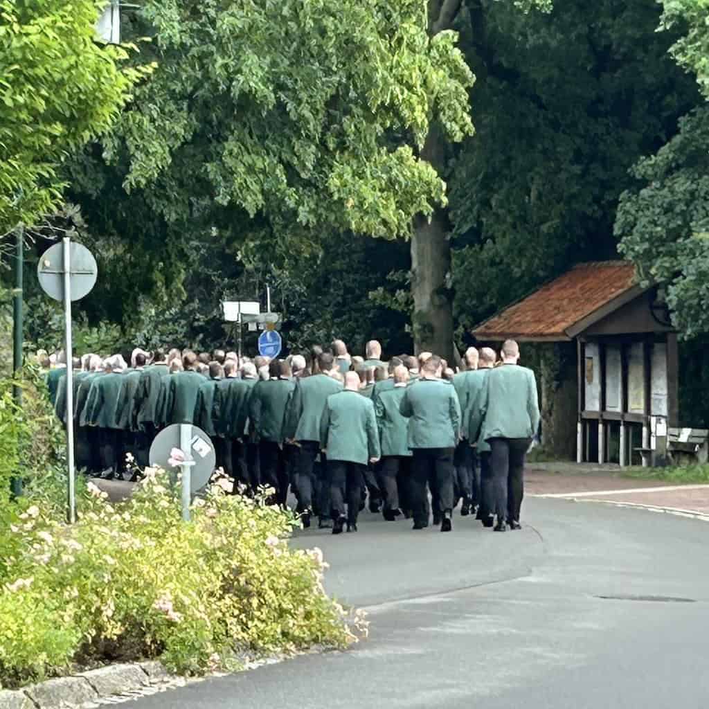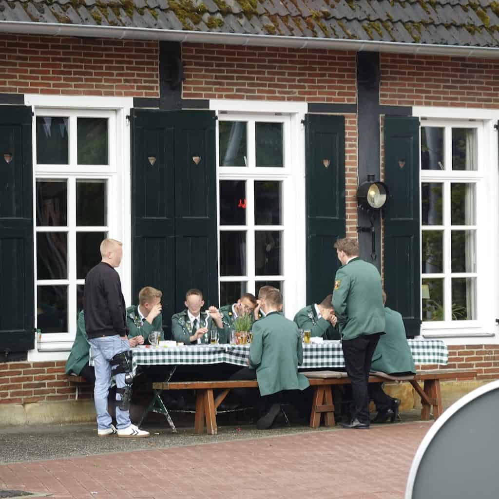 Es ist ein Umzug des Schützenvereins, den wir nur noch von hinten erwischen. Auf der Weiterfahrt sehen wir schon einige beim Frühschoppen.
