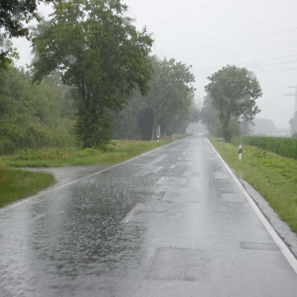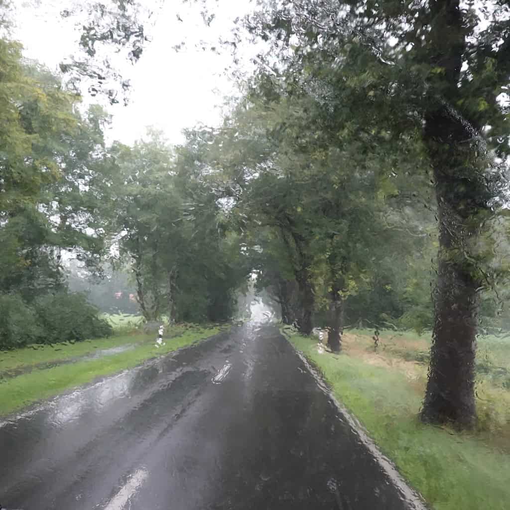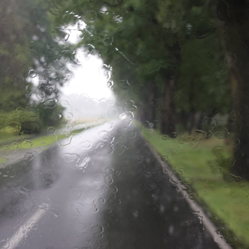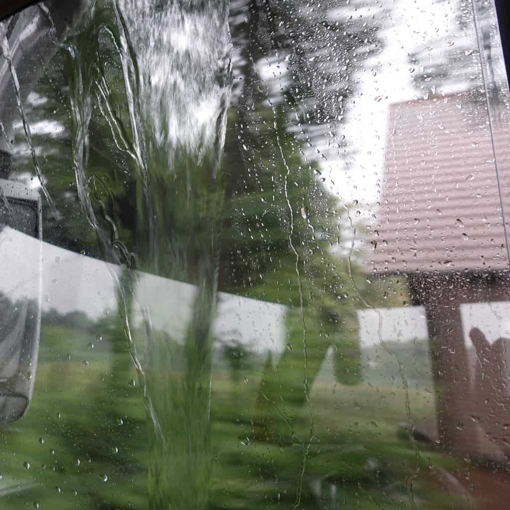 Der morgendliche Nieselregen entwickelt sich bald zu einem anhaltend starken Regen. Von der eigentlich schönen Landschaft sehen wir nicht viel.
