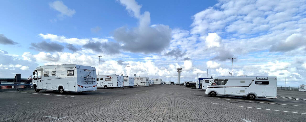 Unser Ziel ist der Stellplatz beim Fährhafen. Von den 100 Plätzen sind höchstens 50% belegt. Sogar von den sonst so beliebten Plätzen in der ersten Reihe sind noch viele frei. Grund sind gemäss einiger Camper die horrend gestiegenen Preise, besonders für Fahrzeuge über 8 Meter Länge. Für uns kostet der Platz 19 Euro plus 2 x € 3.30 für die Gästekarte, total € 25.60. Über 8 Meter sind es aber schon € 34.10, obwohl die Stellflächen für alle gleich gross sind?!.