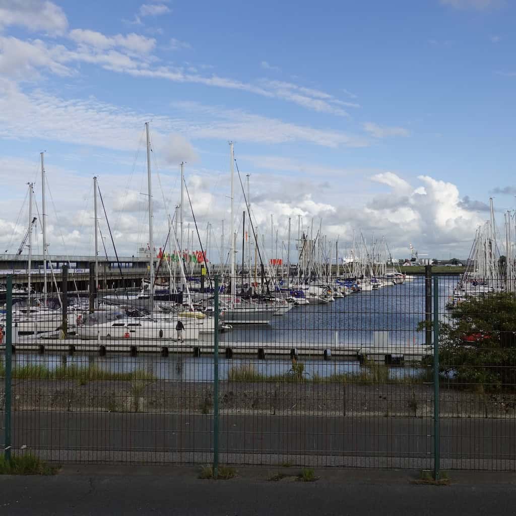 Nebenan ist der Sportboothafen. Die grossen Pötte fahren dicht vorbei. Gleich um die Ecke geht die Fähre nach Helgoland, mit der wir morgen fahren wollen.