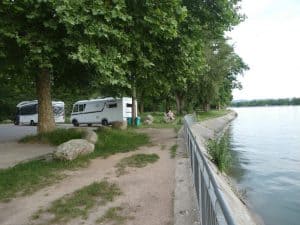 Wir fahren in Weil am Rhein auf einen uns schon bekannten Stellplatz, schön gelegen direkt am Rhein.