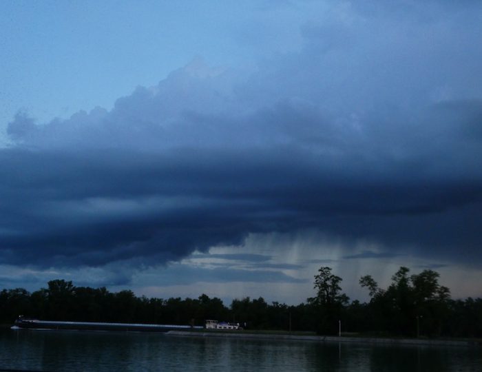 Wir erleben noch ein schönes Abendrot, aber gemischt mit bedrohlichen Gewitterwolken.