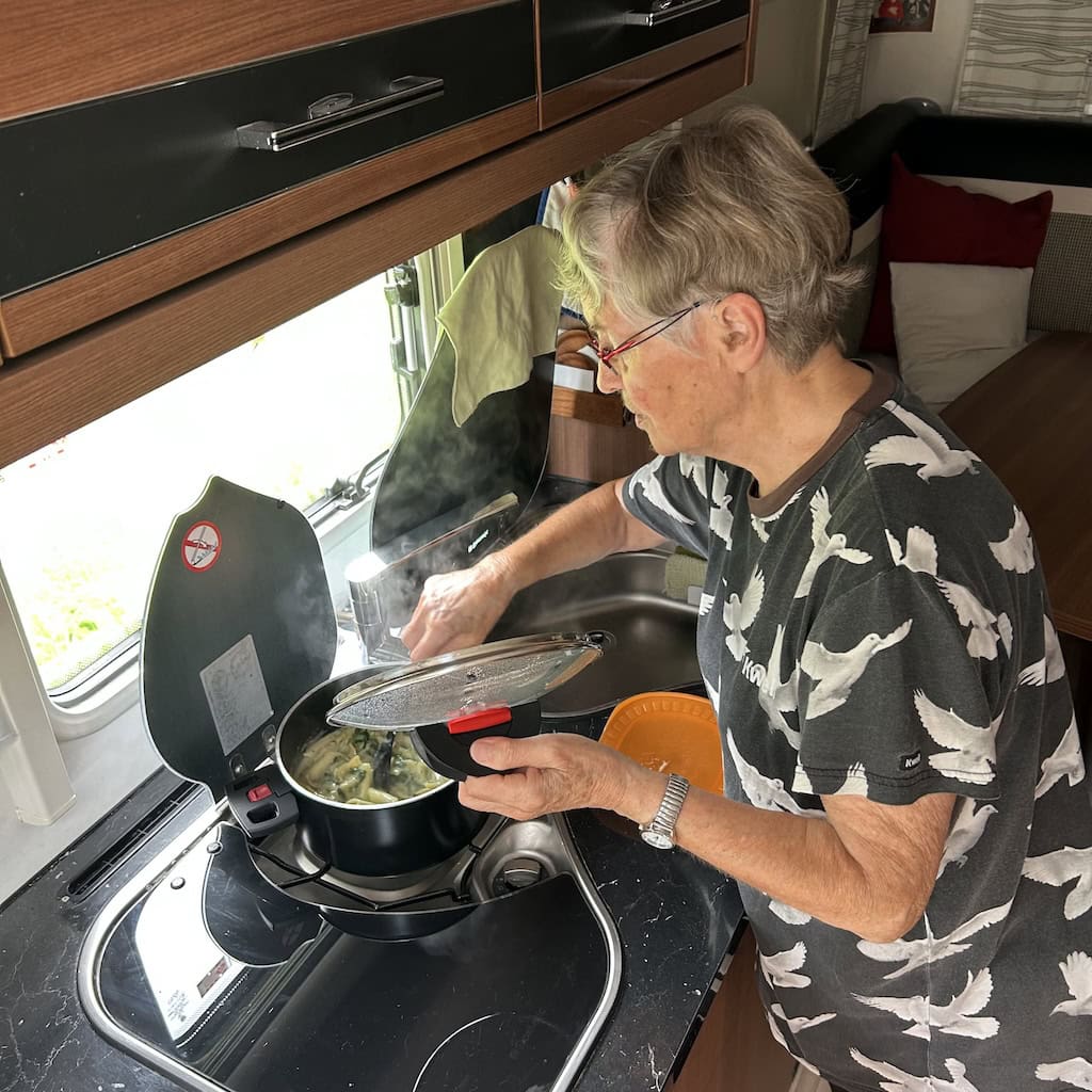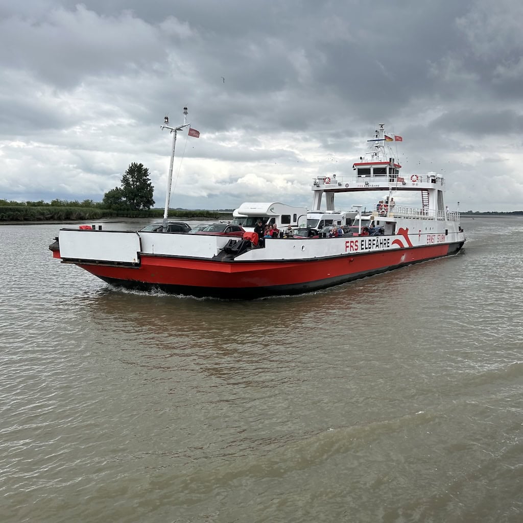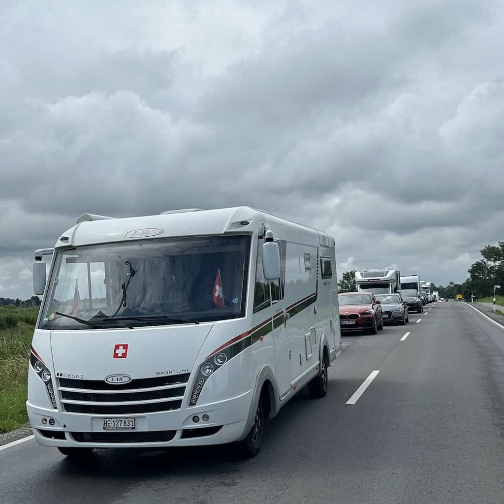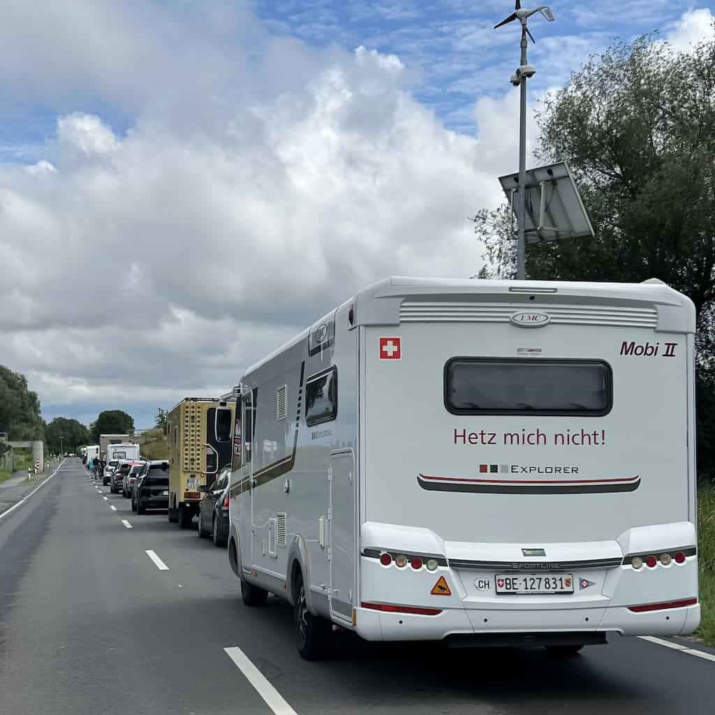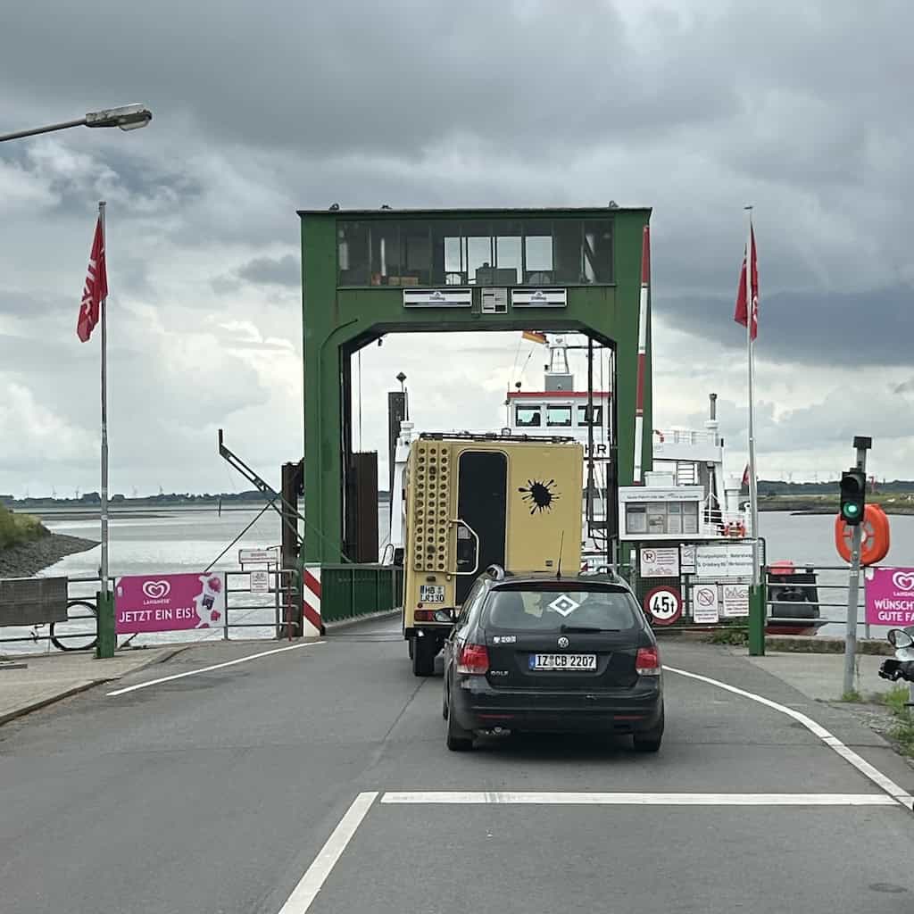 Doch einige Kilometer vor Wischhafen stockt der Verkehr. Während es immer wieder ein Stück weitergeht, bereitet uns Renate das Mittagessen zu. Wir können sogar noch in Ruhe essen.