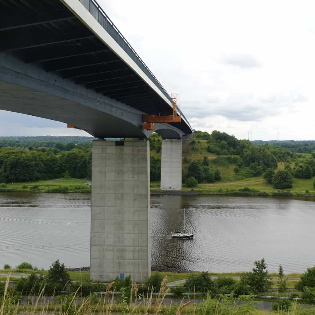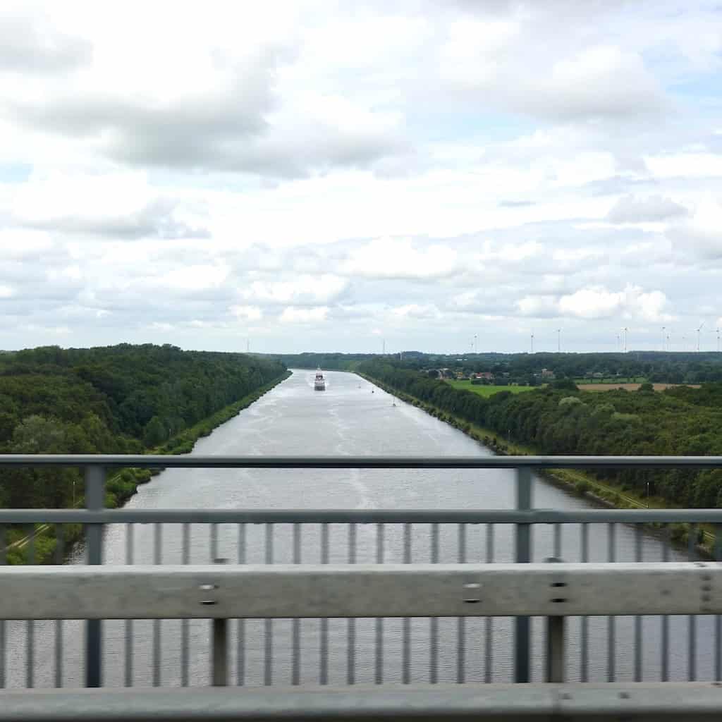 Später fahren wir ein Stück Autobahn und kreuzen den Nord-Ostsee-Kanal. Von einem Parkplatz kann man zu einem Aussichtspunkt spazieren.
