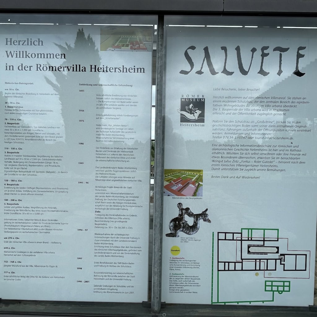 Im heutigen Römerpark befand sich einst eine römische Villa. Das Römermuseum zeigt originale Baufunde und bietet Einblicke in das Leben des damaligen Gutsbesitzers. Die Villa Urbana in Heitersheim war die grösste Einzelsiedlung in Baden-Württemberg.