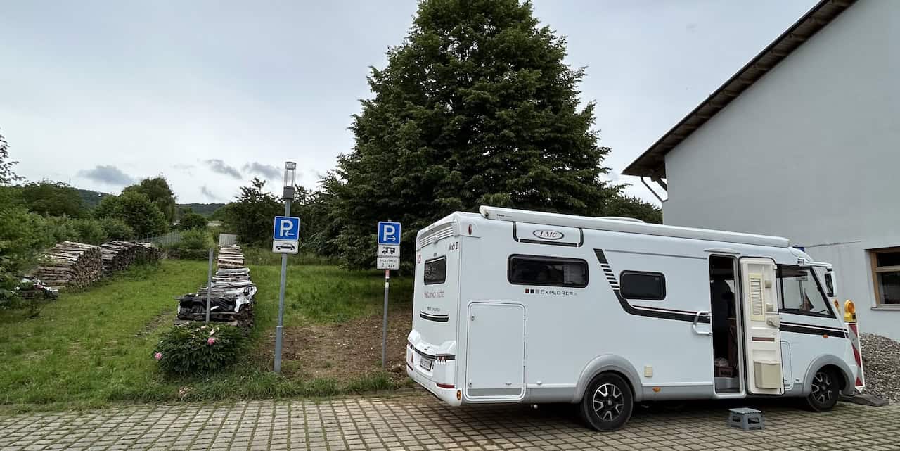 Bei einer Mehrzweckhalle werden hier für eine Übernachtung zwei kostenlose Stellplätze angeboten.
