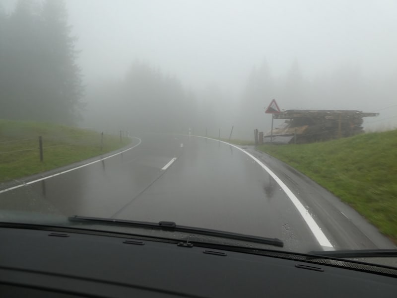 Also fahren wir die Passstrasse im dichten Nebel hinunter.