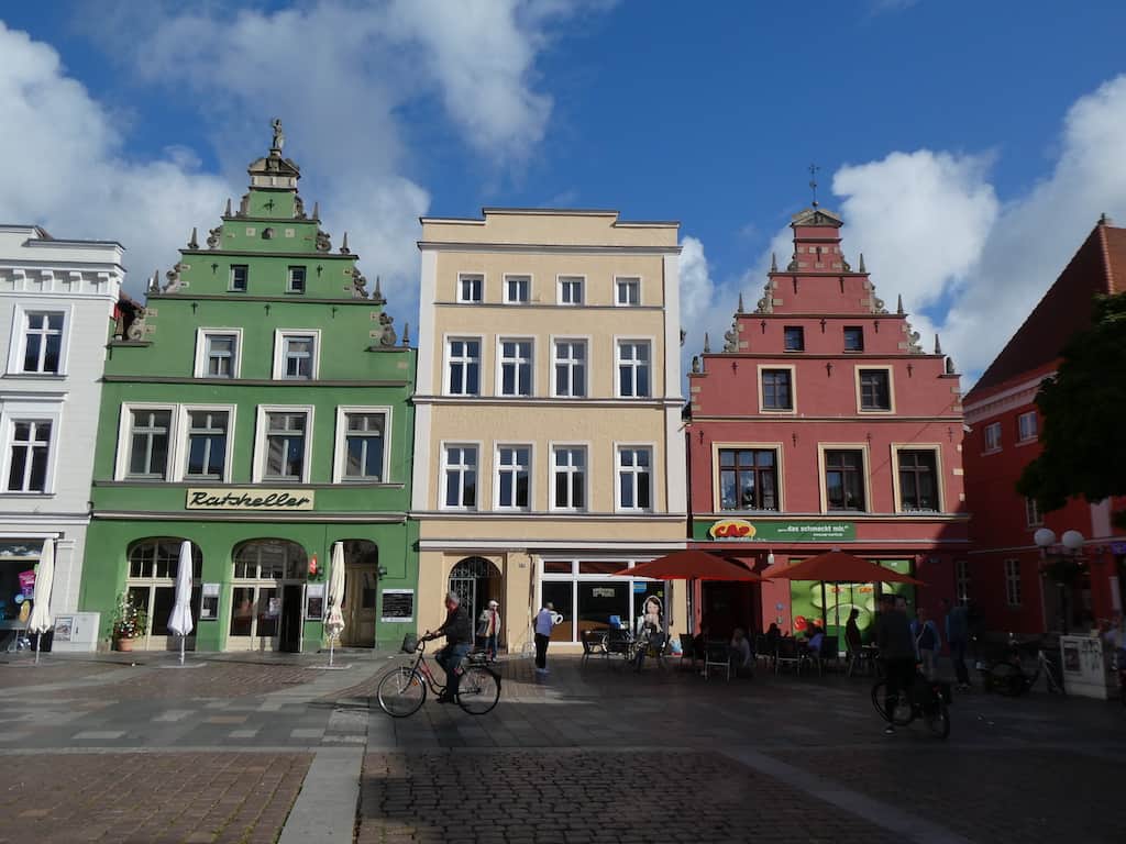Hurra, die Sonne scheint. Bevor wir Güstrow verlassen, besorgen wir auf dem Markt noch Blumen für Uschi, wo wir morgen, Sonntag, zu Besuch sein werden.