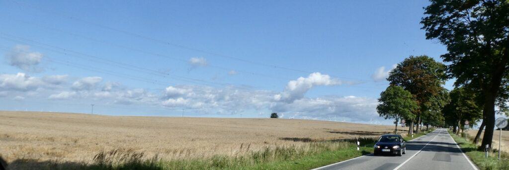 Auf der Weiterfahrt beeindruckt uns wieder diese Weite. Diese riesigen Felder bis zum Horizont. Wobei das Land hier immer leicht hügelig ist.