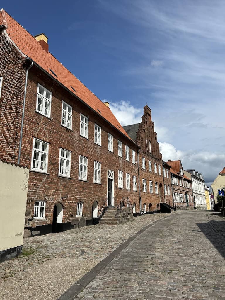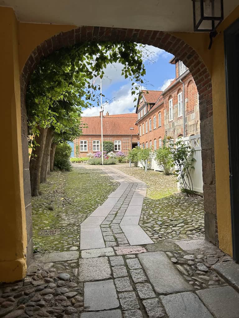 Nördlich des Doms liegt der Huldigungsplatz, auf dem über die Jahrhunderte dänische Könige geehrt wurden. Wir spazieren durch den ältesten Teil der Stadt. Hübsche alte Bauten und immer wieder haben wir Einblicke in schöne Hinterhöfe.