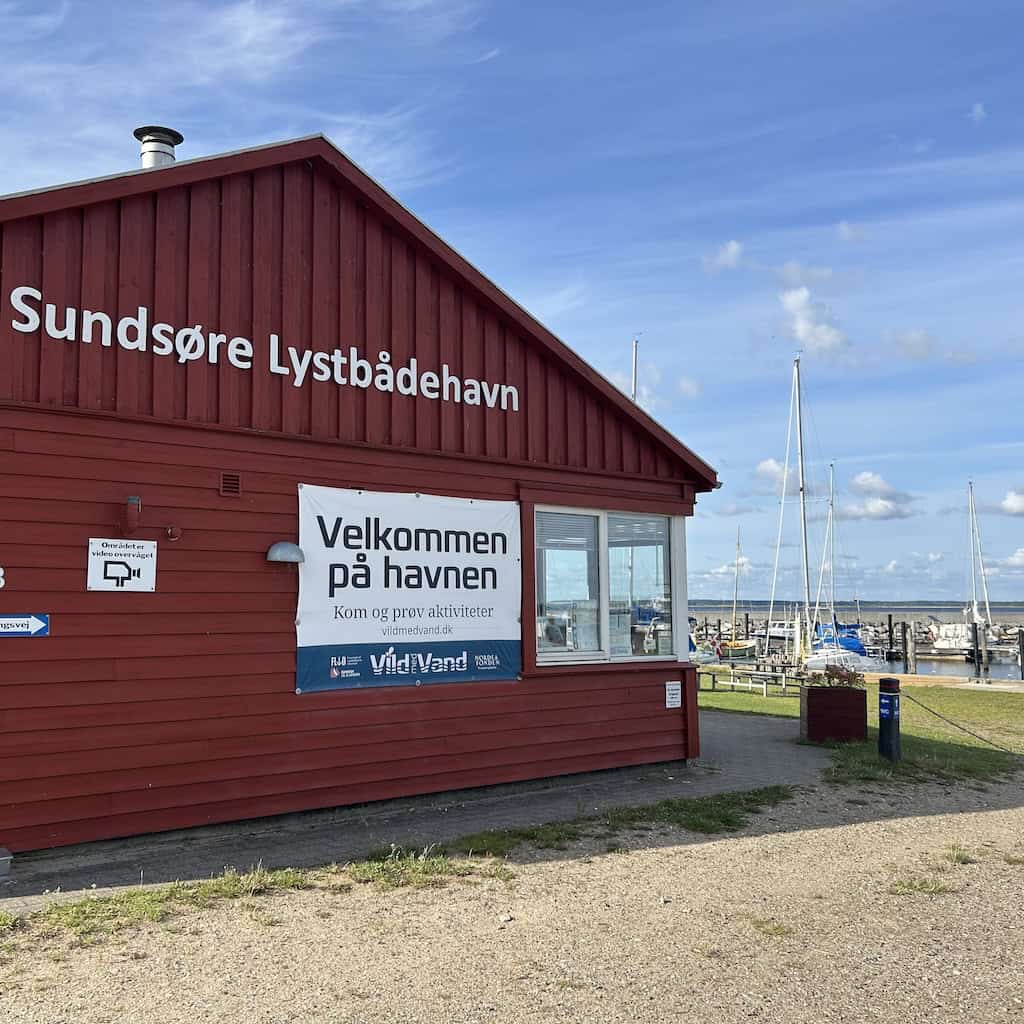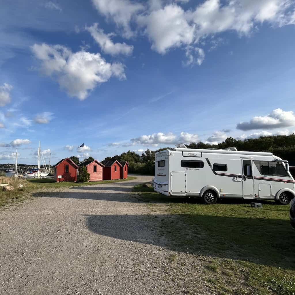 In Sundsøre zeigt unsere Stellplatz-App eine Übernachtungsmöglichkeit bei einem kleinen Hafen am Limfjord.