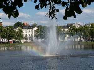 Im Wasser der Fontaine beobachten wir einen Regenbogen.