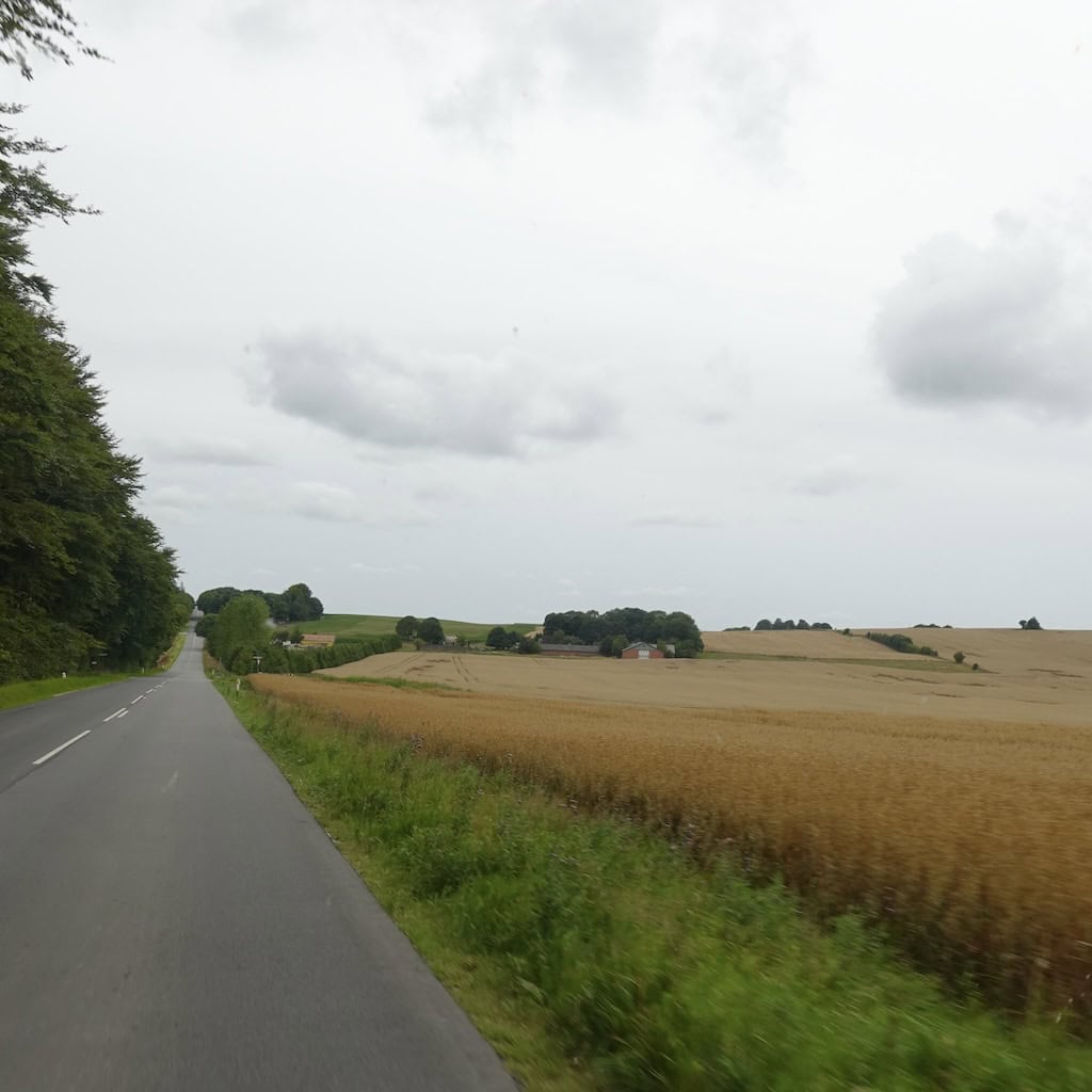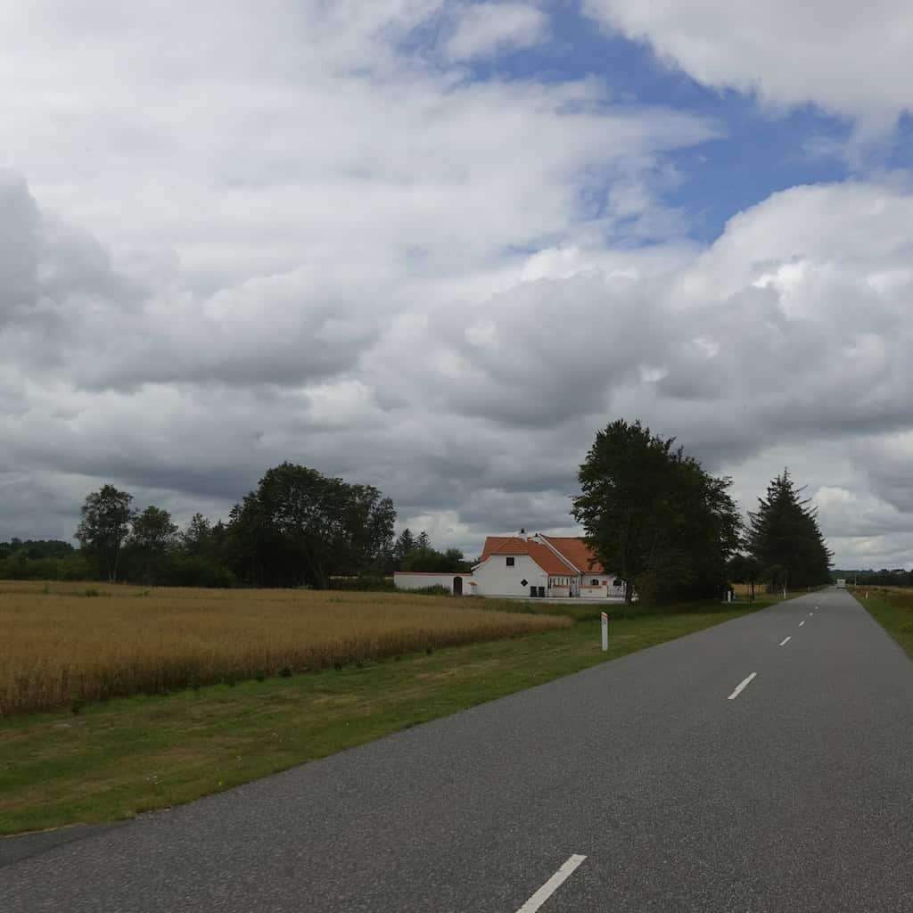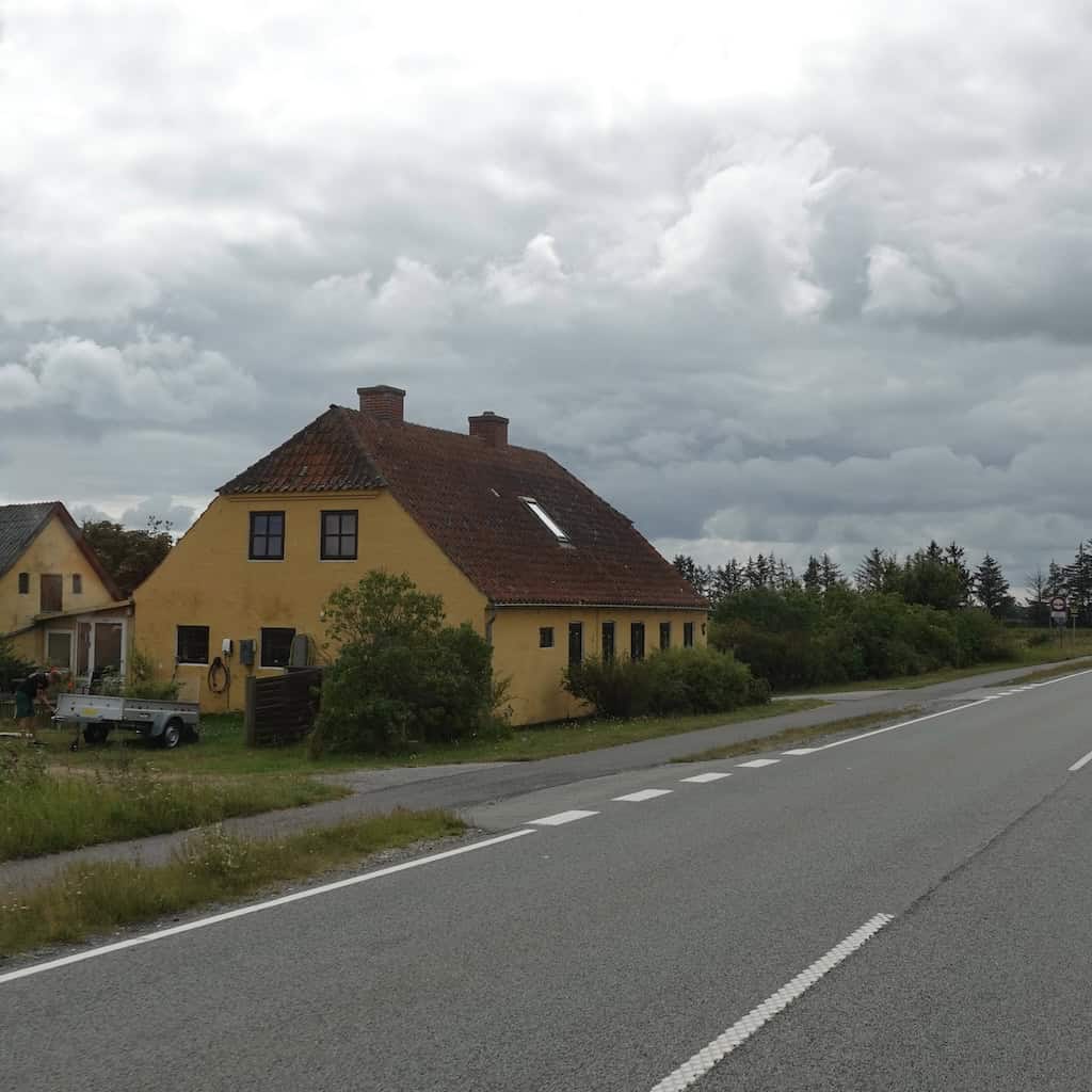 Also fahren wir eine Etappe weiter südlich, denn am Donnerstag geht ja unsere Fähre von Grenaa nach Halmstadt in Schweden. Wir kommen durch ungewohnt hügeliges Gelände. Viele Häuser in Dänemark sind in diesem Ockergelb gestrichen. Auch hübsch, wenn die Sonne nicht scheint.