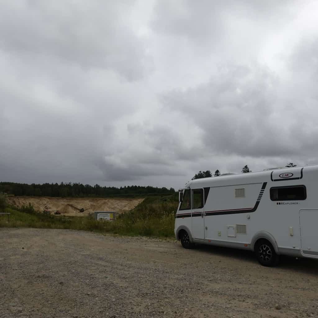 Kaum sind wir dort fertig, setzt Regen ein. Glück gehabt, denn die Tankstelle ist nicht überdacht. Etwas abseits der Landstrasse bei einer Sand-/Kiesgrube halten wir unsere Mittagspause.