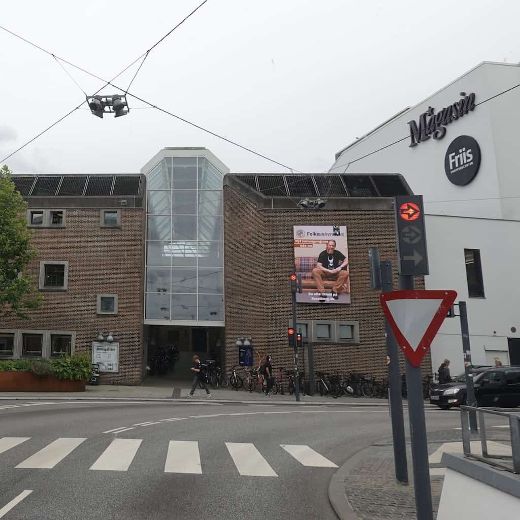 In Aalborg kreuzen wir die Zufahrt der Schiffe zum Limfjord. Wir haben im Navi ein Einkaufszentrum eingegeben, um etwas für unsere Tochter Christiane zu besorgen. Allerdings liegt dieser Laden nicht wie erwartet an der Peripherie mit grossem Parkplatz, sondern im Zentrum und mit einer Tiefgarage. Mit dem Mobi haben wir keine Chance hier zu parken.
