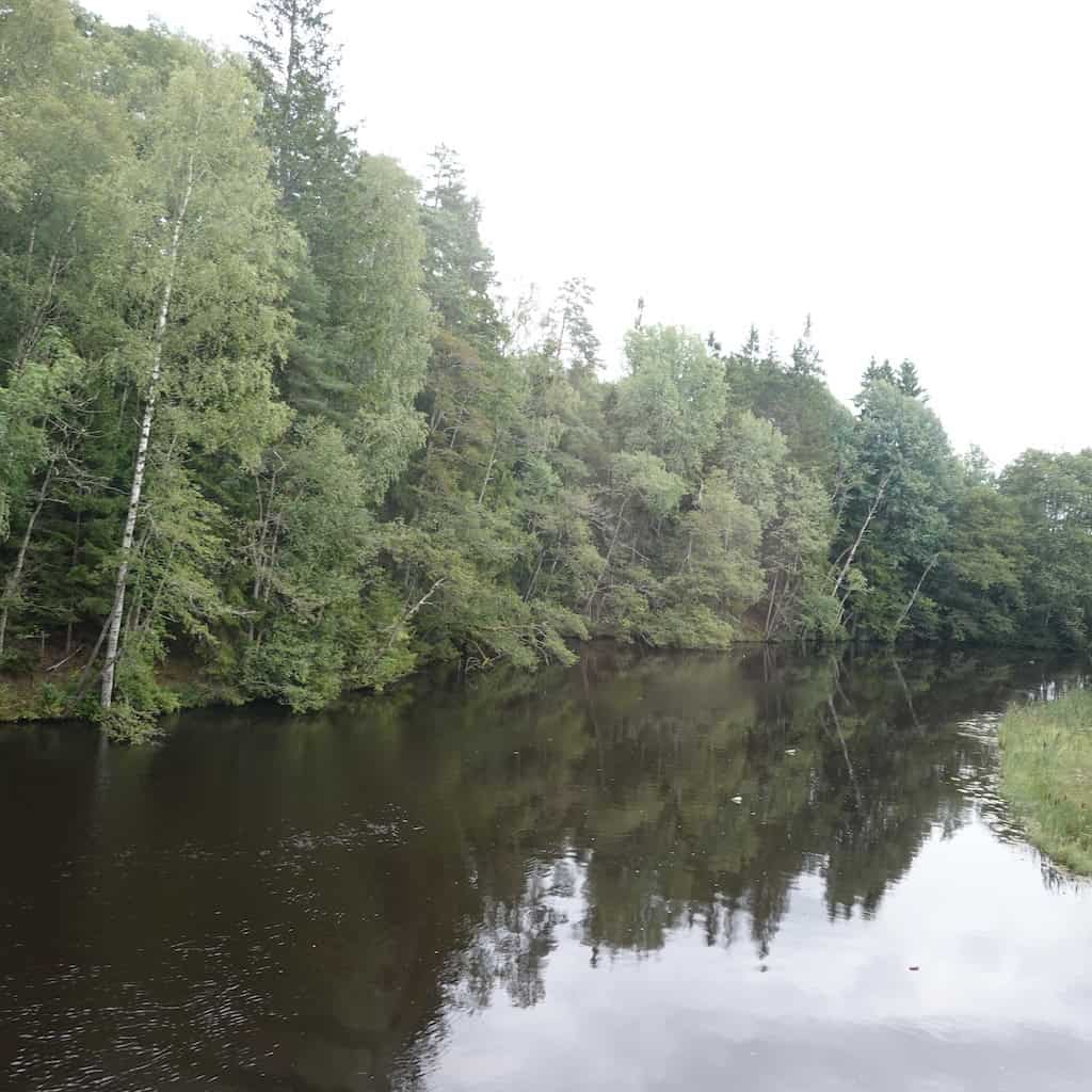 Die Route führt weitgehend am Fluss Åtran entlang durch eine sehr abwechslungsreiche und schöne Landschaft. Für unsere Mittagspause finden wir ein ruhiges Plätzchen in einem Waldweg.