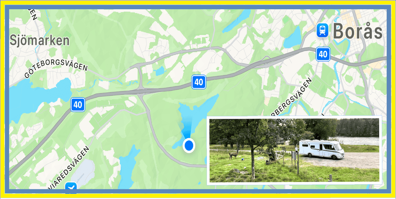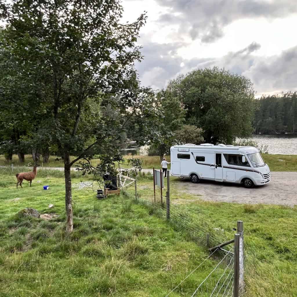 Nicht weit von Borås steuern wir einen Stellplatz an einem kleinen See an. Nebenan tauchen Schafe auf und später auch Alpakas. Einige Hundebesitzer kommen kurz zum Gassigehen hierher. Ansonsten ist es hier sehr friedlich und ruhig.
