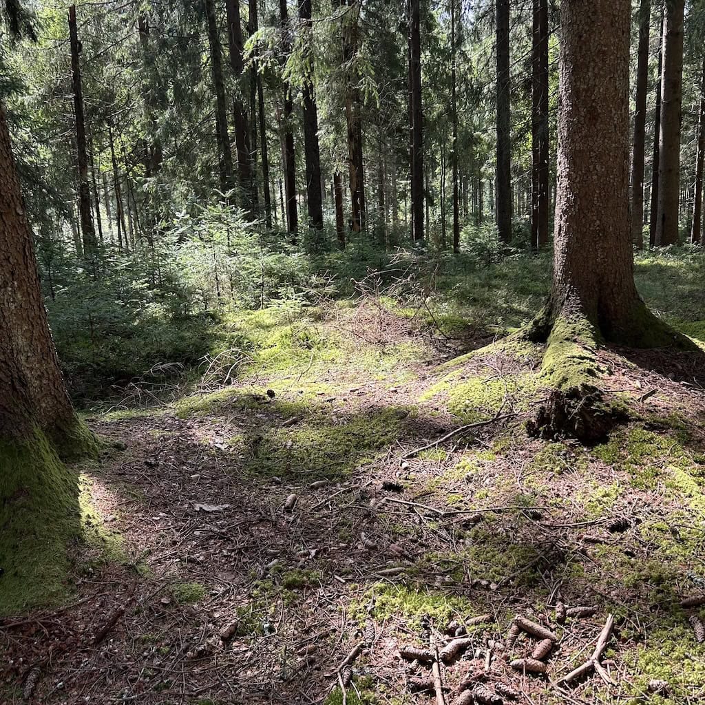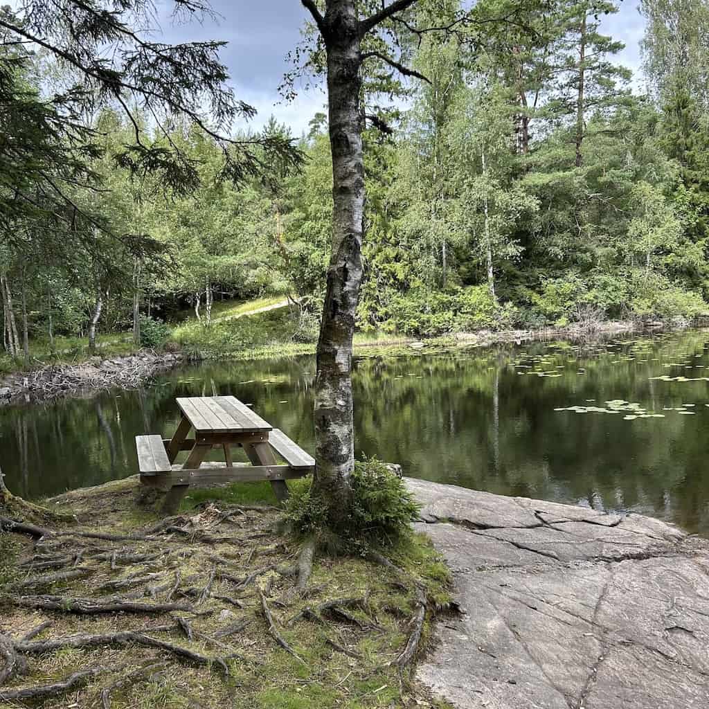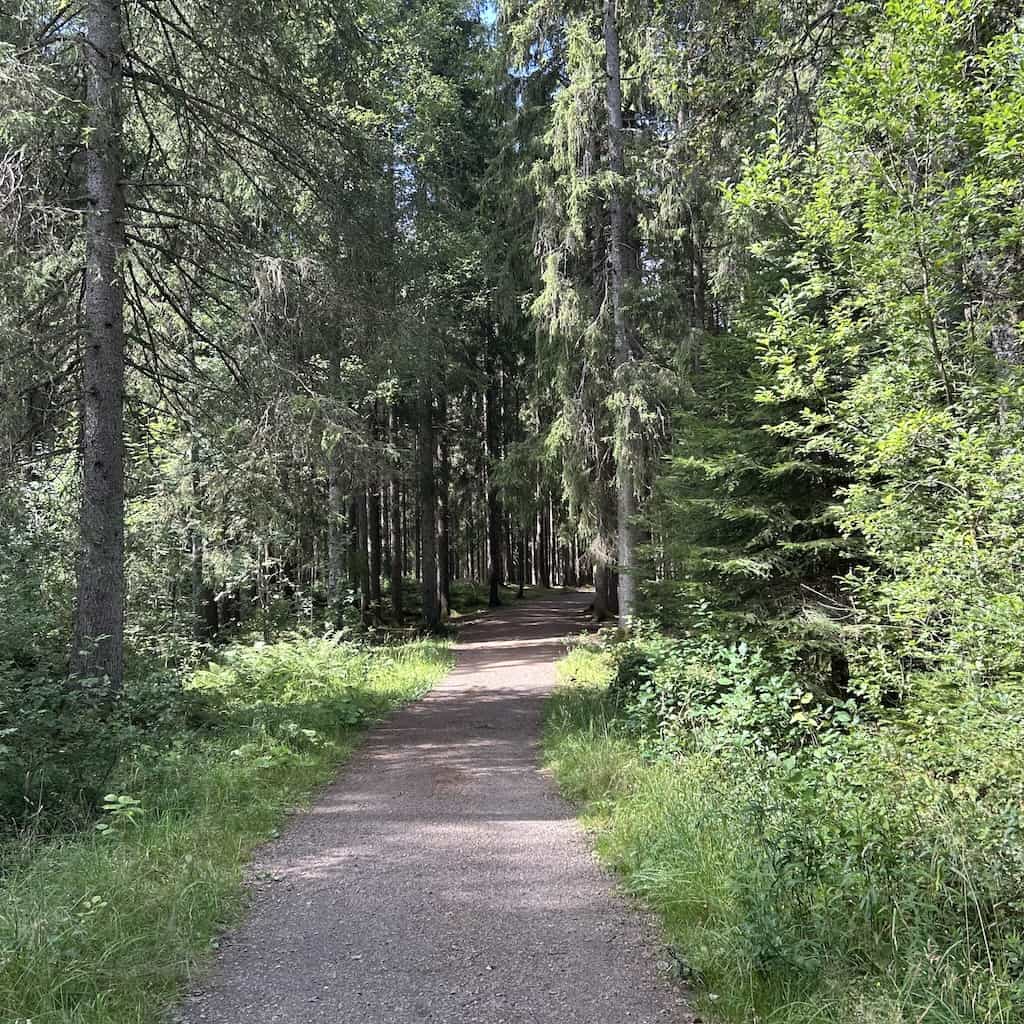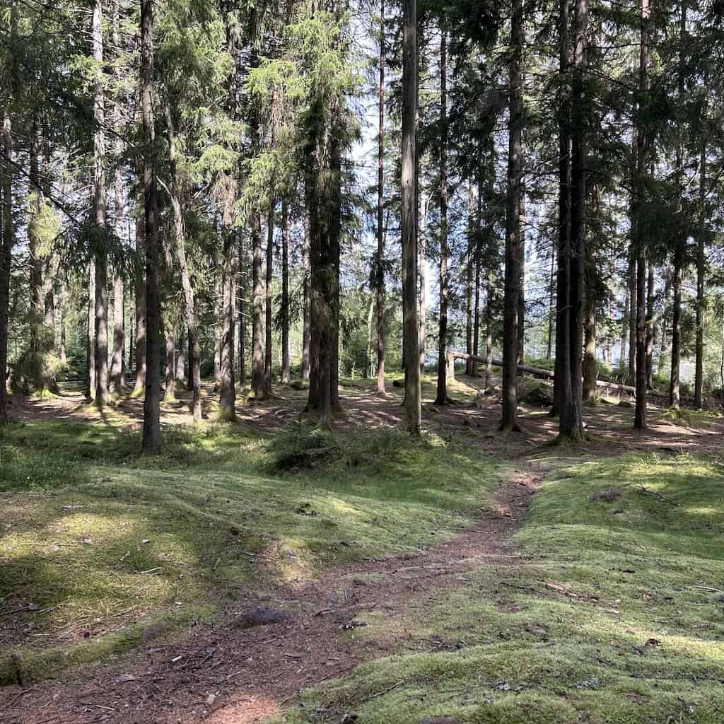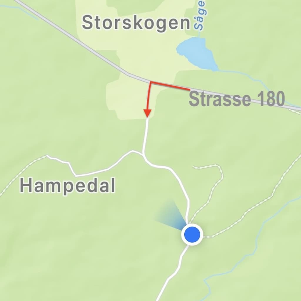 Etwa nach einem Kilometer finden wir bei Hampedal einen Waldweg, der eigentlich Ruhe verspricht.