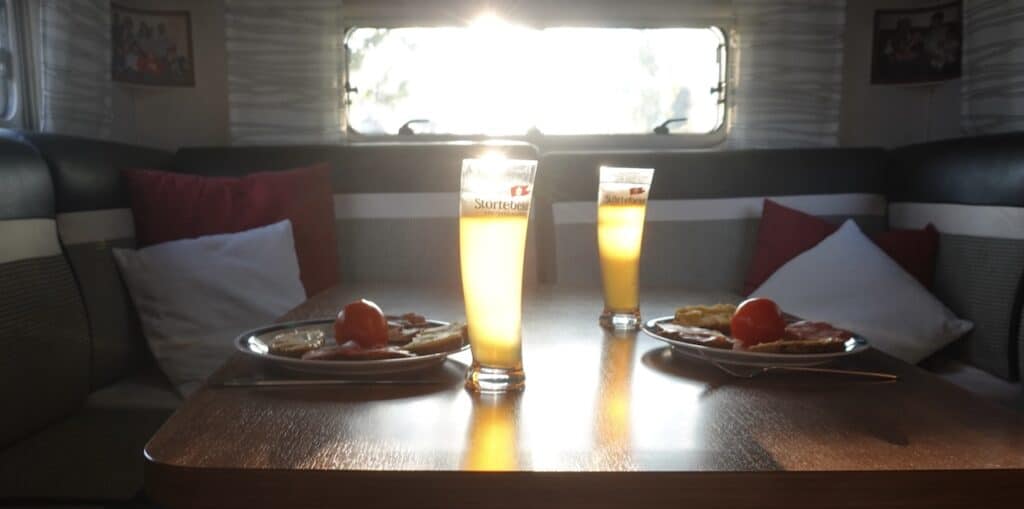 Heute gönnen wir uns zum Abendbrot wieder einmal ein Bierchen. Der Gerstensaft leuchtet uns in der Abendsonne entgegen.