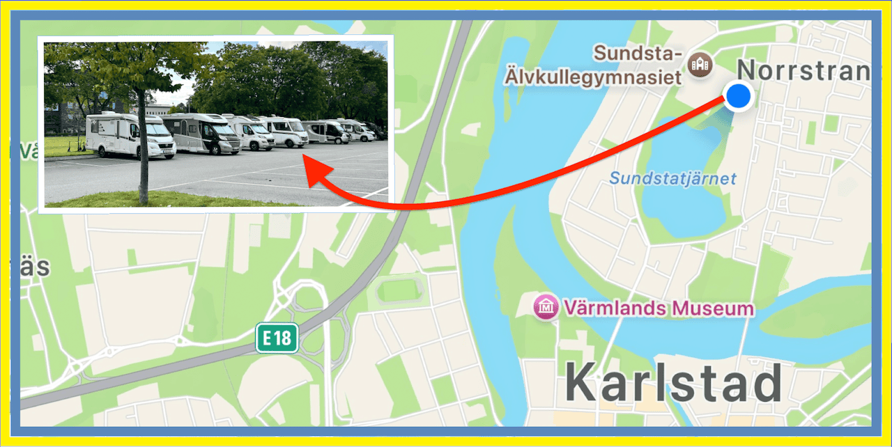 In Karlstad kaufen wir zuerst wieder Lebensmittel ein und suchen uns dann einen ruhigen Stellplatz.