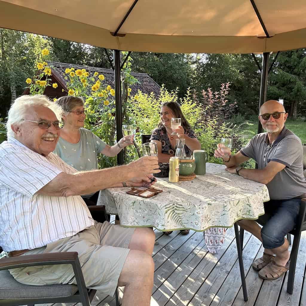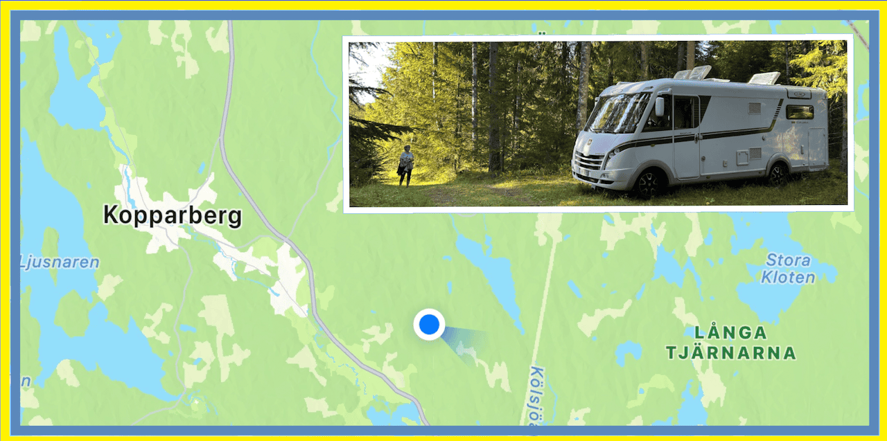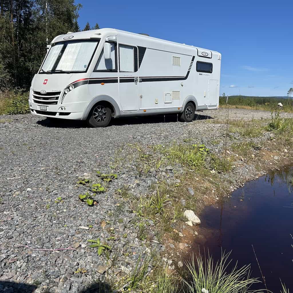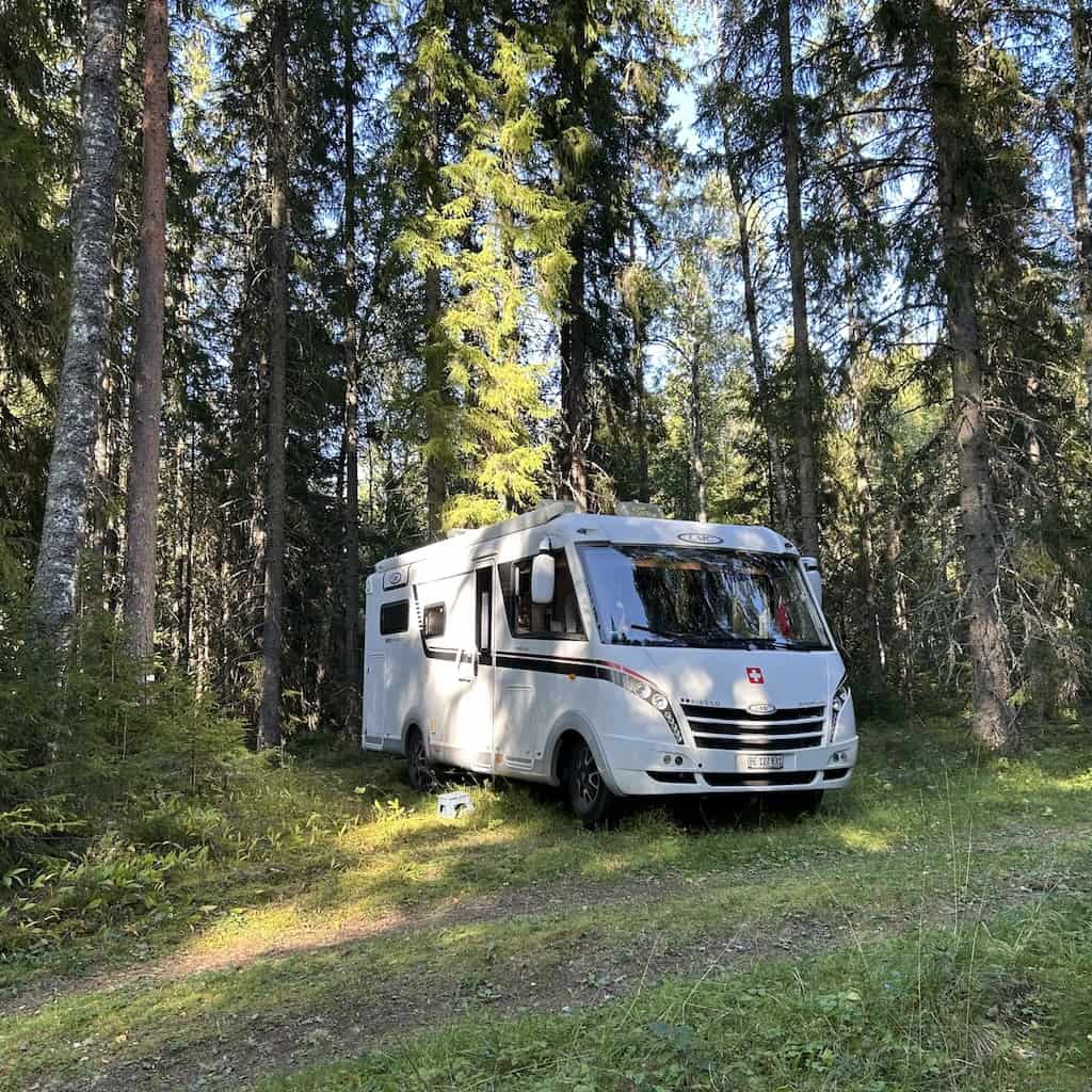 Wir kommen mit unserem Vehikel nicht ganz bis zum Haus, stehen aber weiter oben im Wald ganz prima. Wir geniessen das unerwartete Wiedersehen in Schweden. Nach einem feinen Abendessen mit Grillade und leckeren Salaten von Ingrid und Michael ziehen wir uns zurück. Der Blogbeitrag muss noch produziert werden.