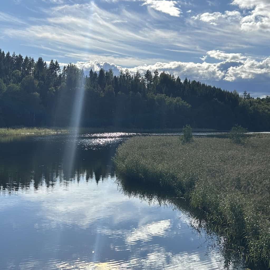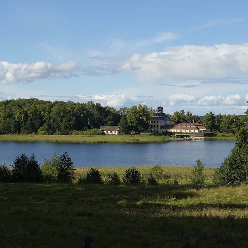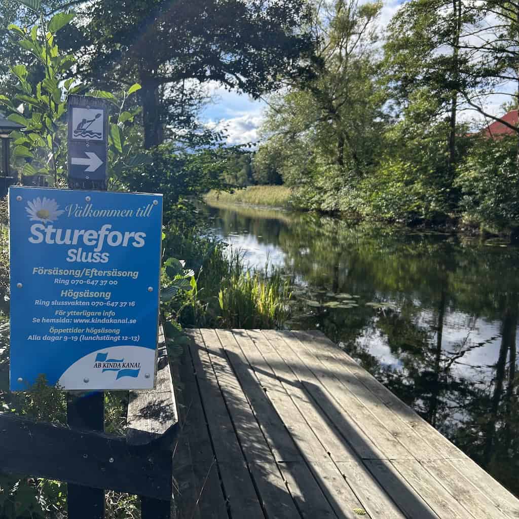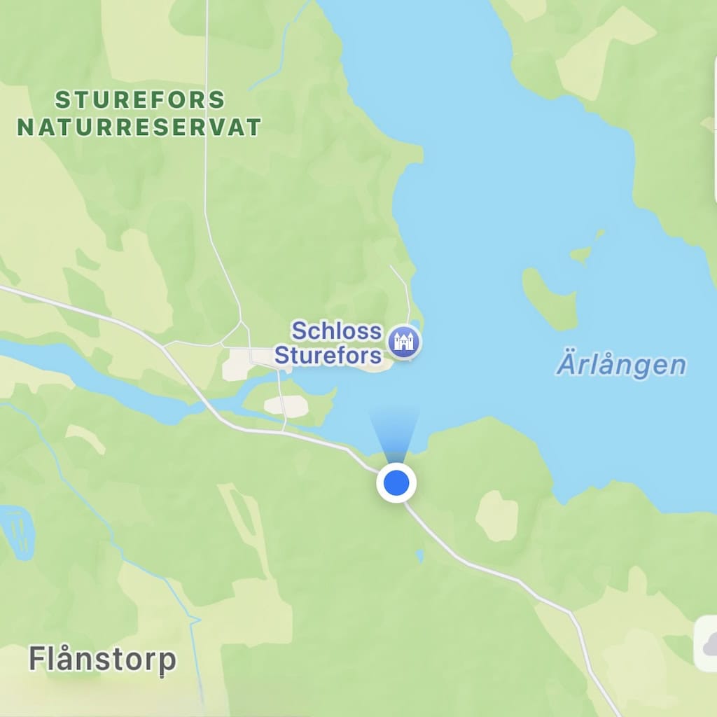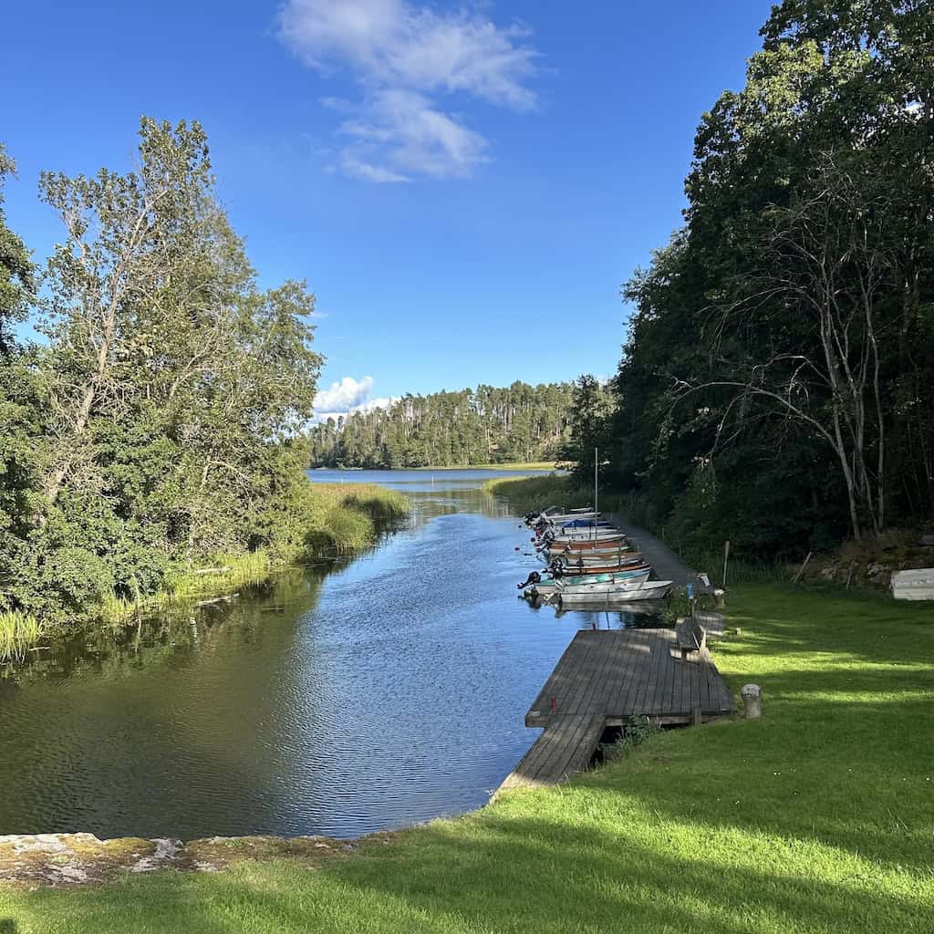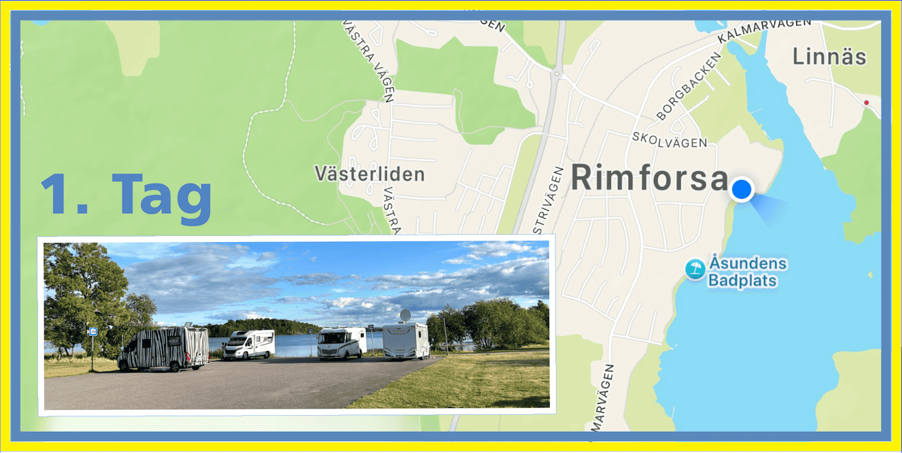 Mehrmals kreuzen wir auch den Kinda-Kanal. Er führt vom See Åsunden über verschiedene Seen 80 km lang zum Götakanal. Die Beschriftung «Peene Münde» an einem Haus in dieser Gegend erstaunt uns und wird ein Rätsel bleiben. Nach einer interessanten Fahrt finden wir an unserem Ziel in Rimforsa einen schönen Stellplatz mit Aussicht auf den See Åsunden.