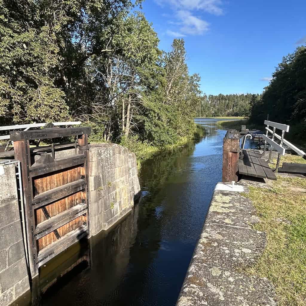 Schon nach wenigen Kilometern kommen wir bei Snöveltorp an den Götakanal, der uns, als alte Wassersportler, immer wieder fasziniert.