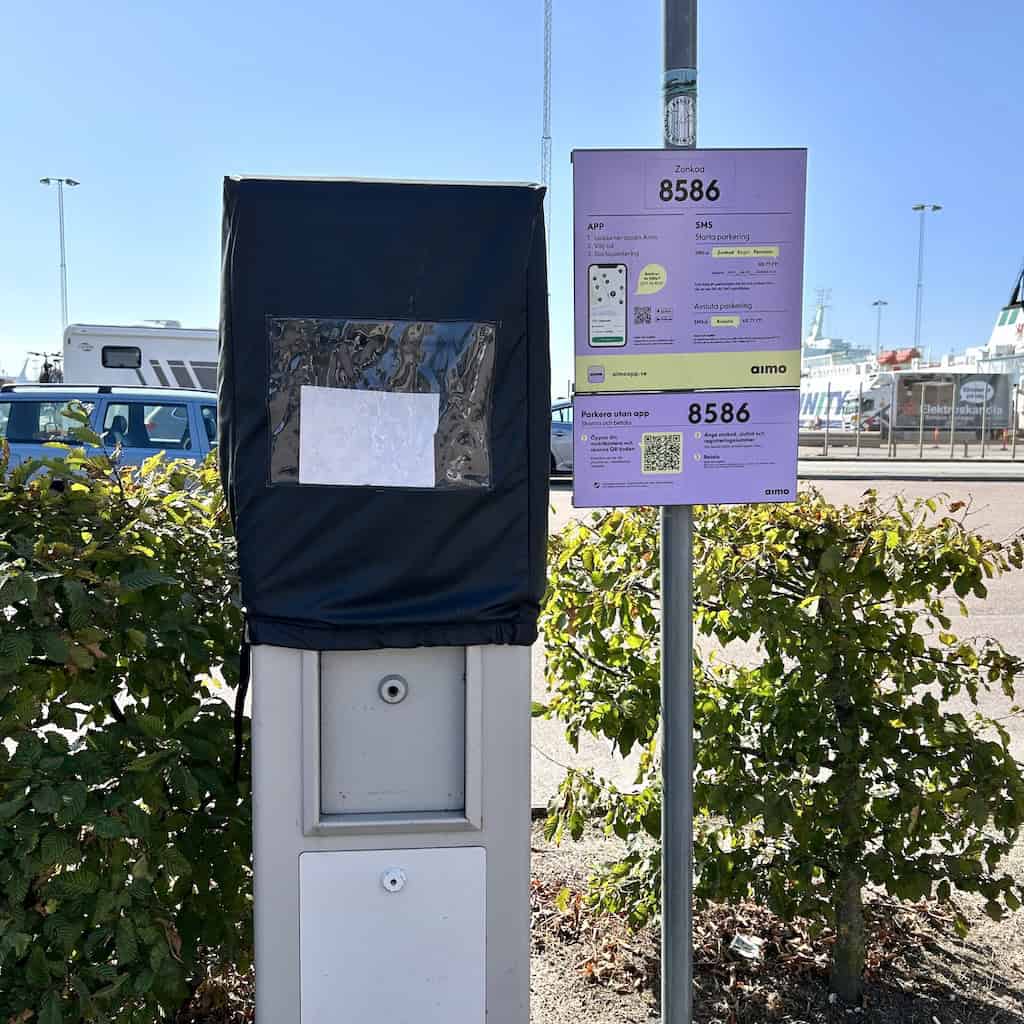 Aber es ist gar nicht so einfach den Parkplatz zu bezahlen. Der Kartenautomat ist abgedeckt und die Online-Bezahlung verlangt Swish, was wir weder einrichten können noch wollen.