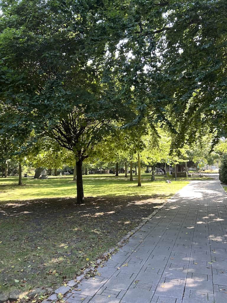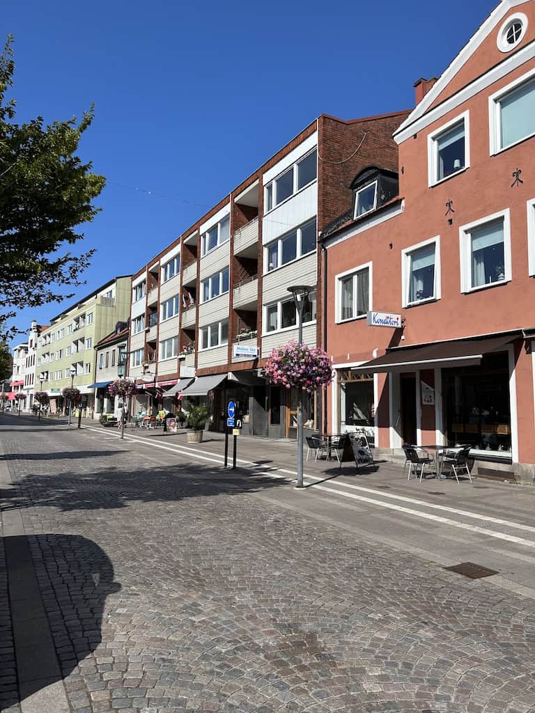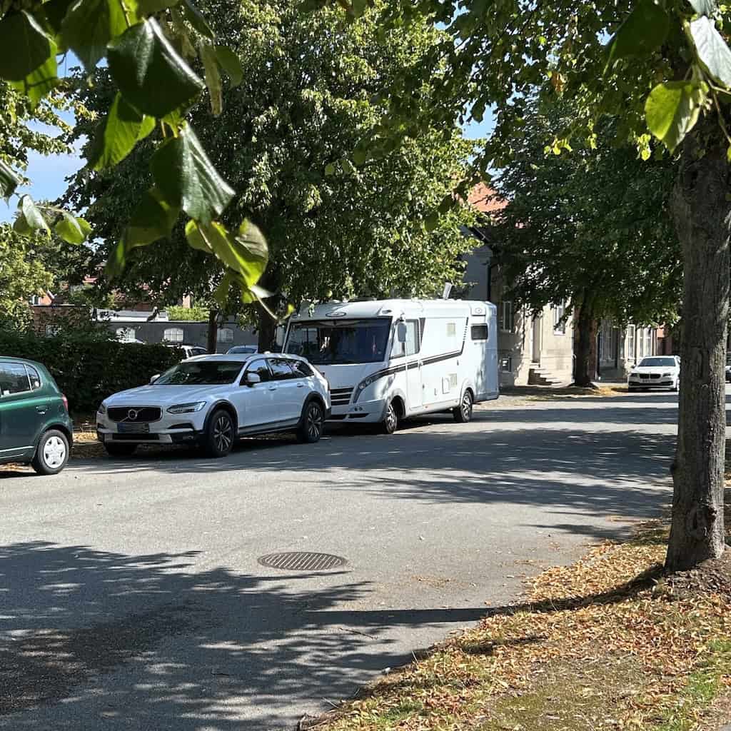 Ein sehr netter Schwede rät uns, in einer der Seitenstrassen neben dem Zentrum zu parken. Dort ist es kostenlos und sei nicht weiter zu laufen als von hier. Dieser Tipp war gut und der Parkplatz ist anfangs sogar im Schatten. Die Temperatur ist heute mit über 22° im Schatten recht hoch.
