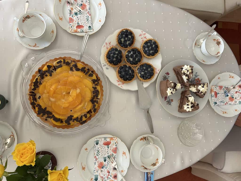 Bei viel zu viel Kuchen und Torte. Alles wirklich sehr lecker, aber nicht zu bewältigen.