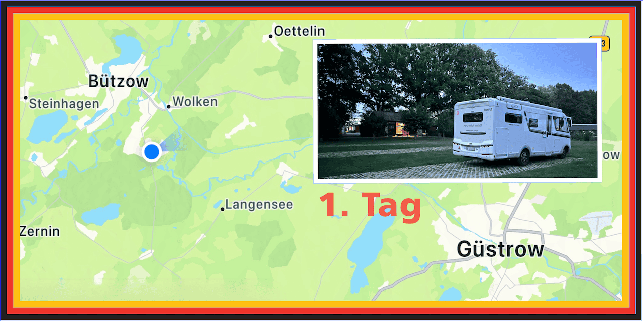 Zum Übernachten fahren wir 35 Kilometer weiter nach Bützow. Wir haben den Stellplatz im Freizeit- und Familienpark vom letzten Jahr in guter Erinnerung.